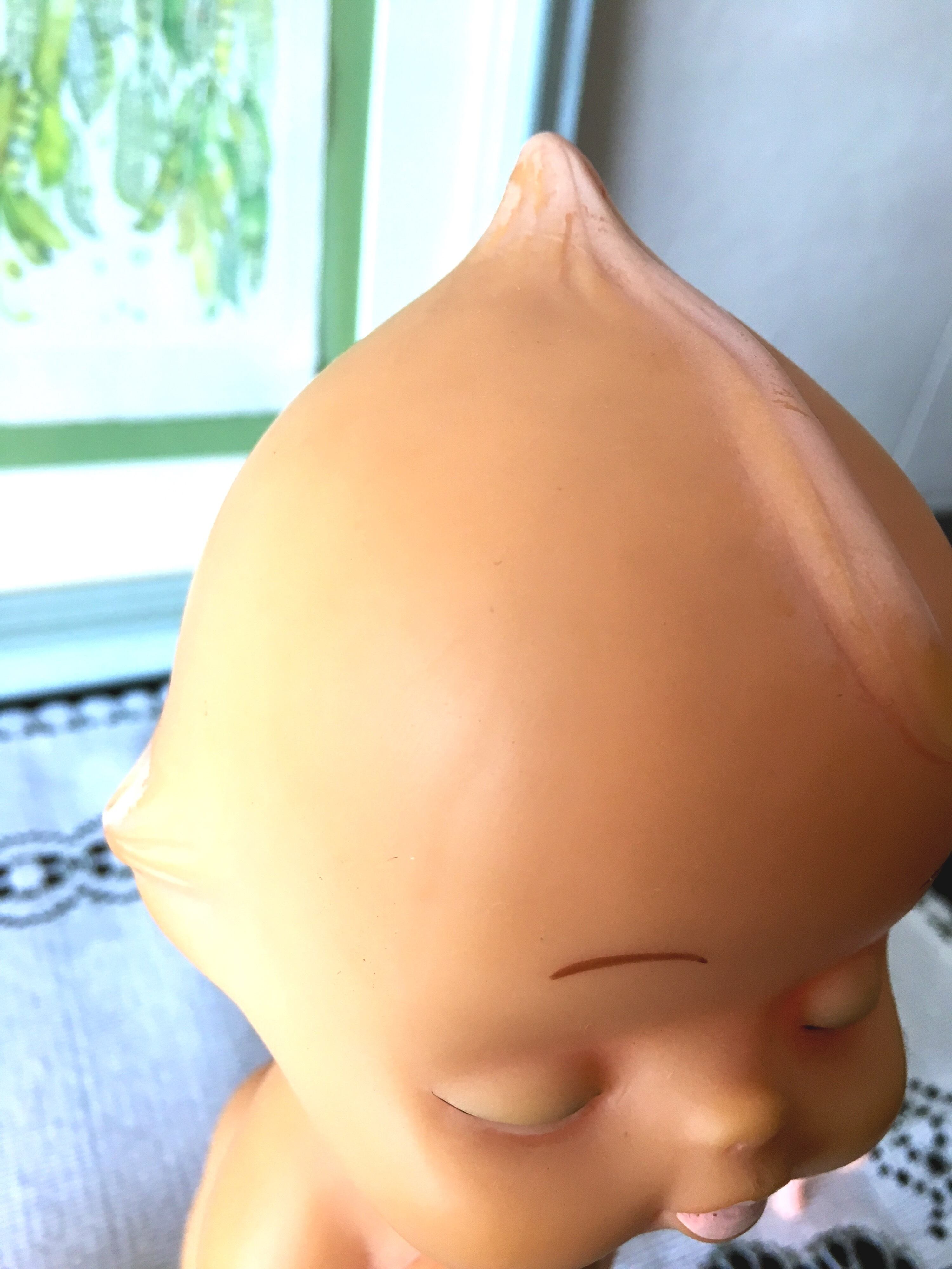 ソフビよりももう少し柔らかな素材で、お腹を押すとキューキューと可愛い音が出る、キューピー人形です。