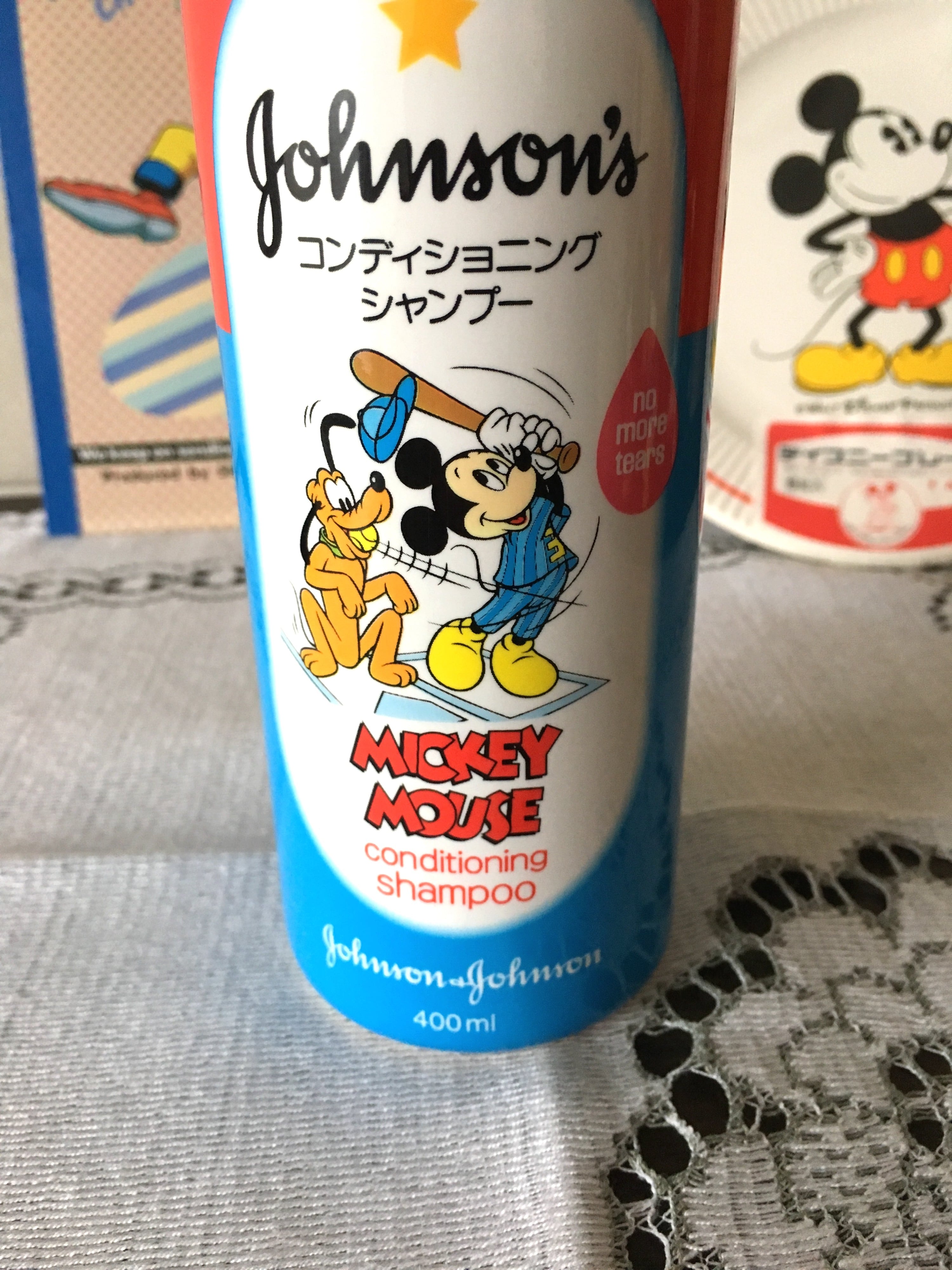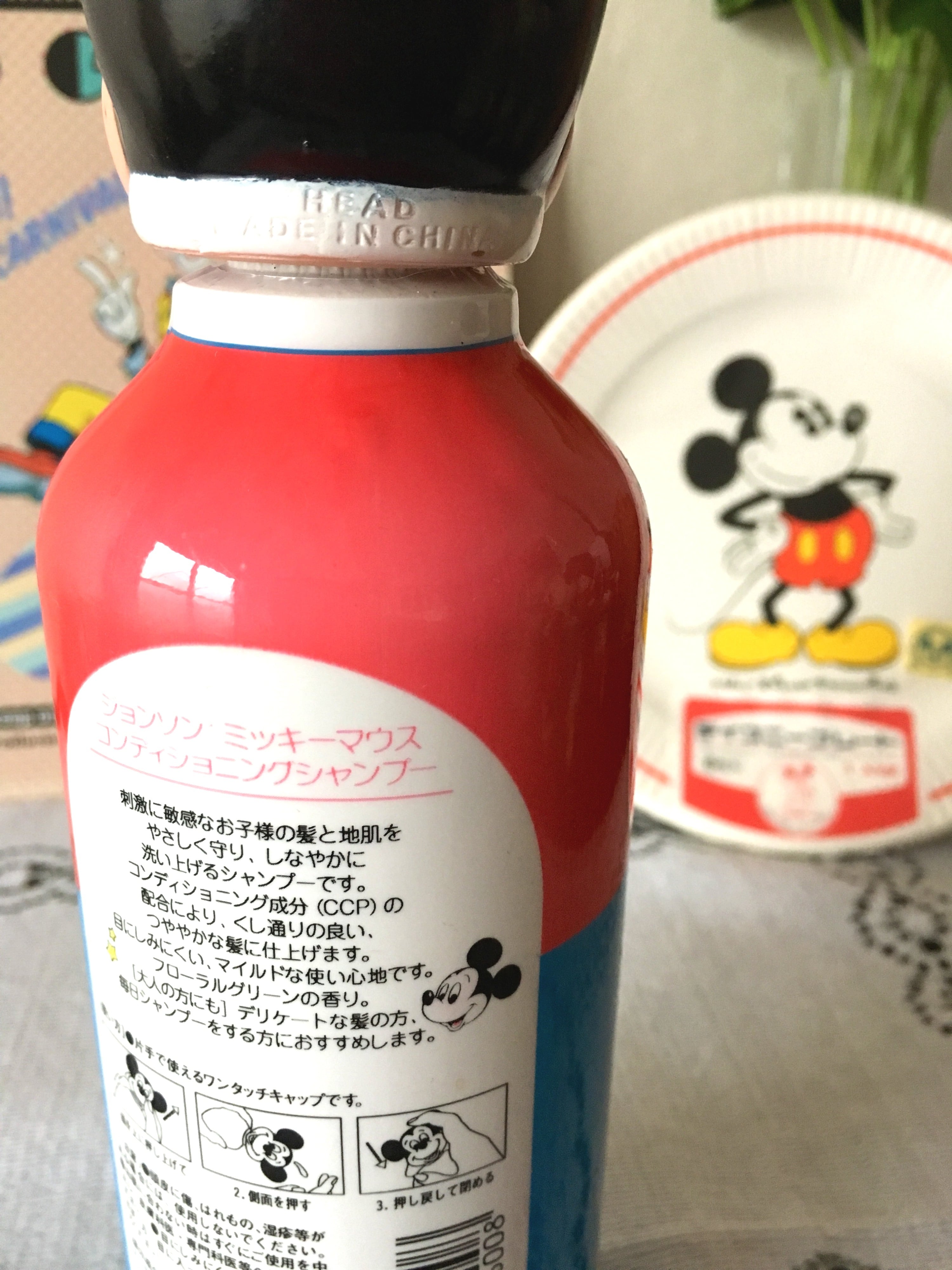 ボトルの頭がミッキーの顔になった容器が可愛い、ジョンソンエンドジョンソンのコンディショニングシャンプーです。