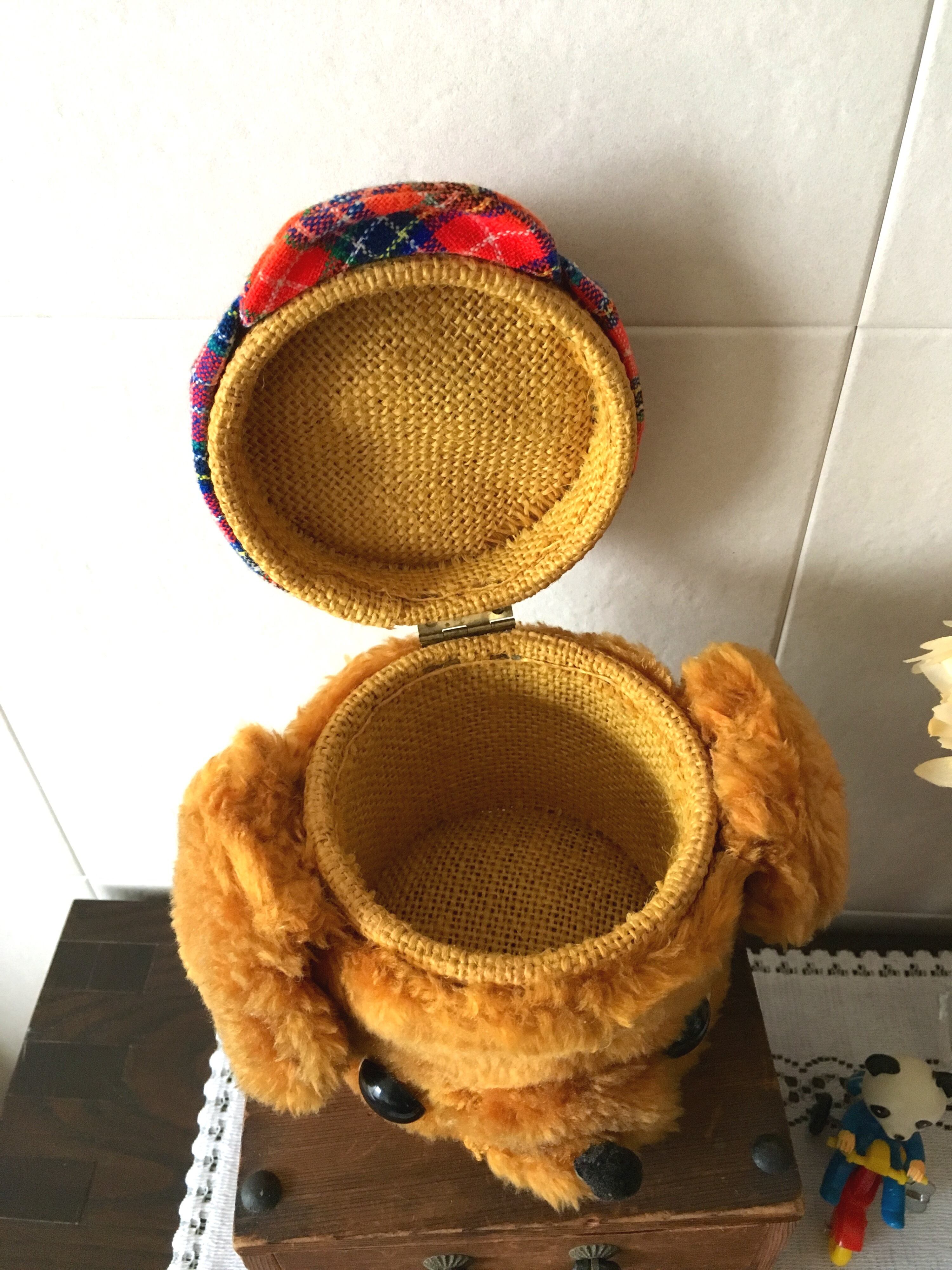 ぬいぐるみのような可愛いワンちゃんのお顔の中にちょっとしたものを入れることができる、小物入れです。