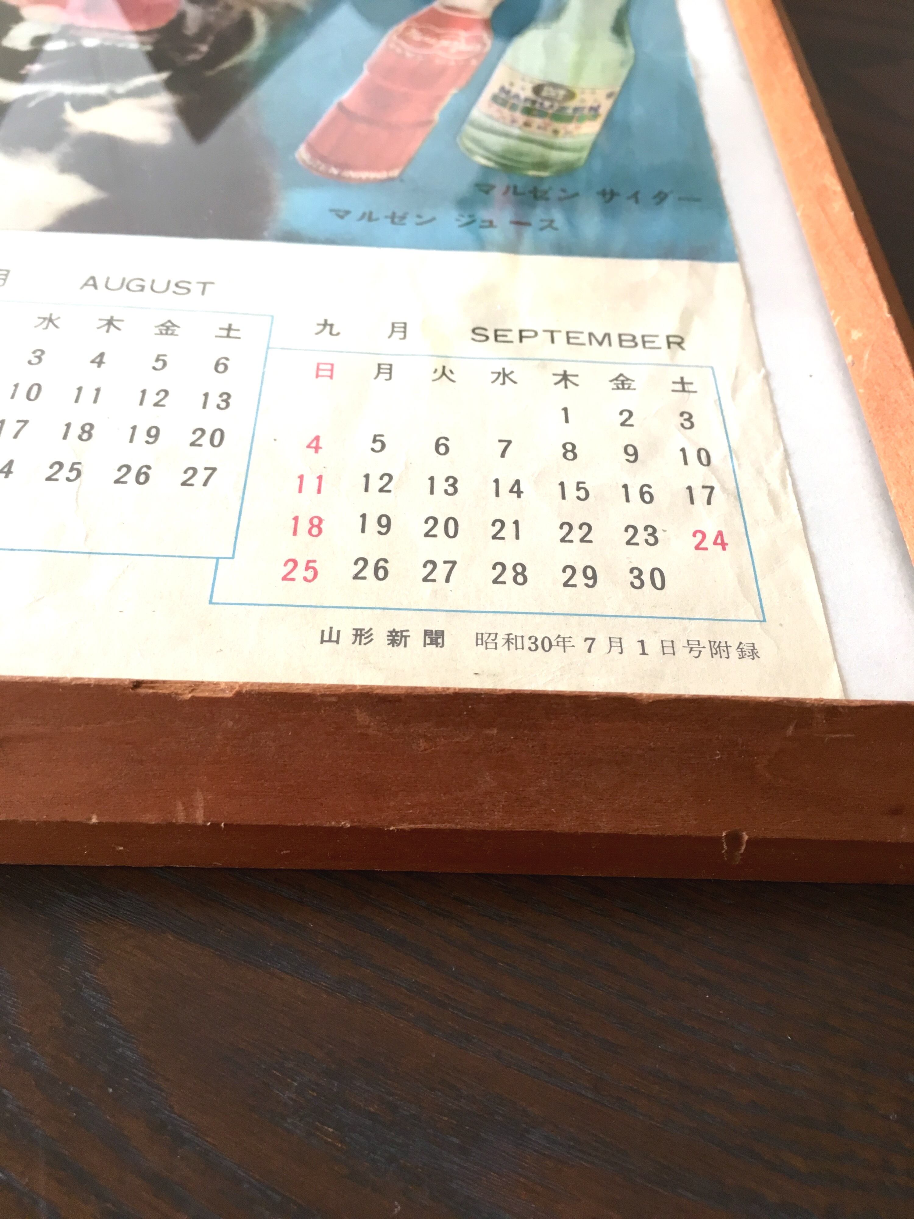 マルゼン、という会社のジュース、サイダーの一枚ものの広告カレンダーです。