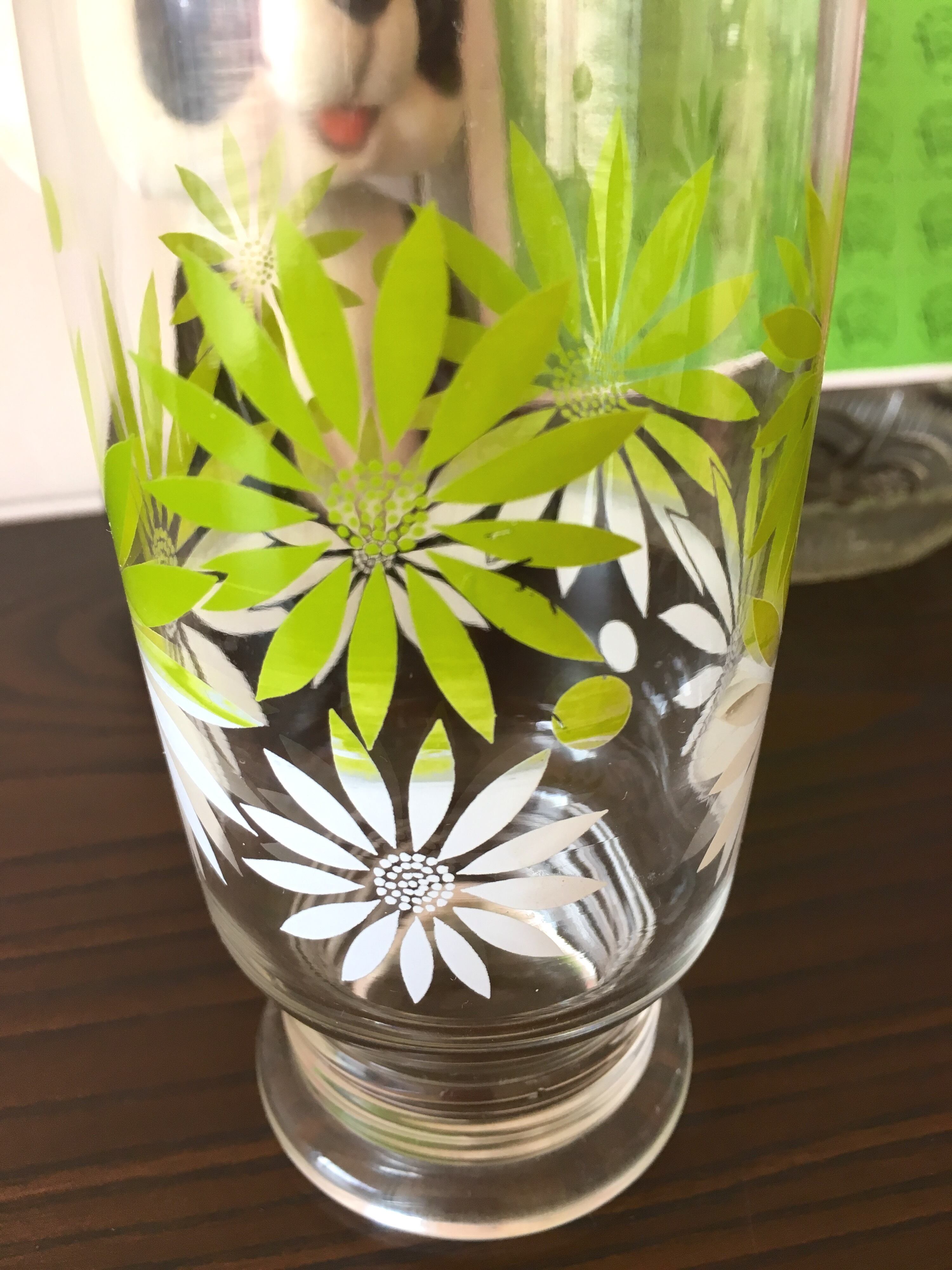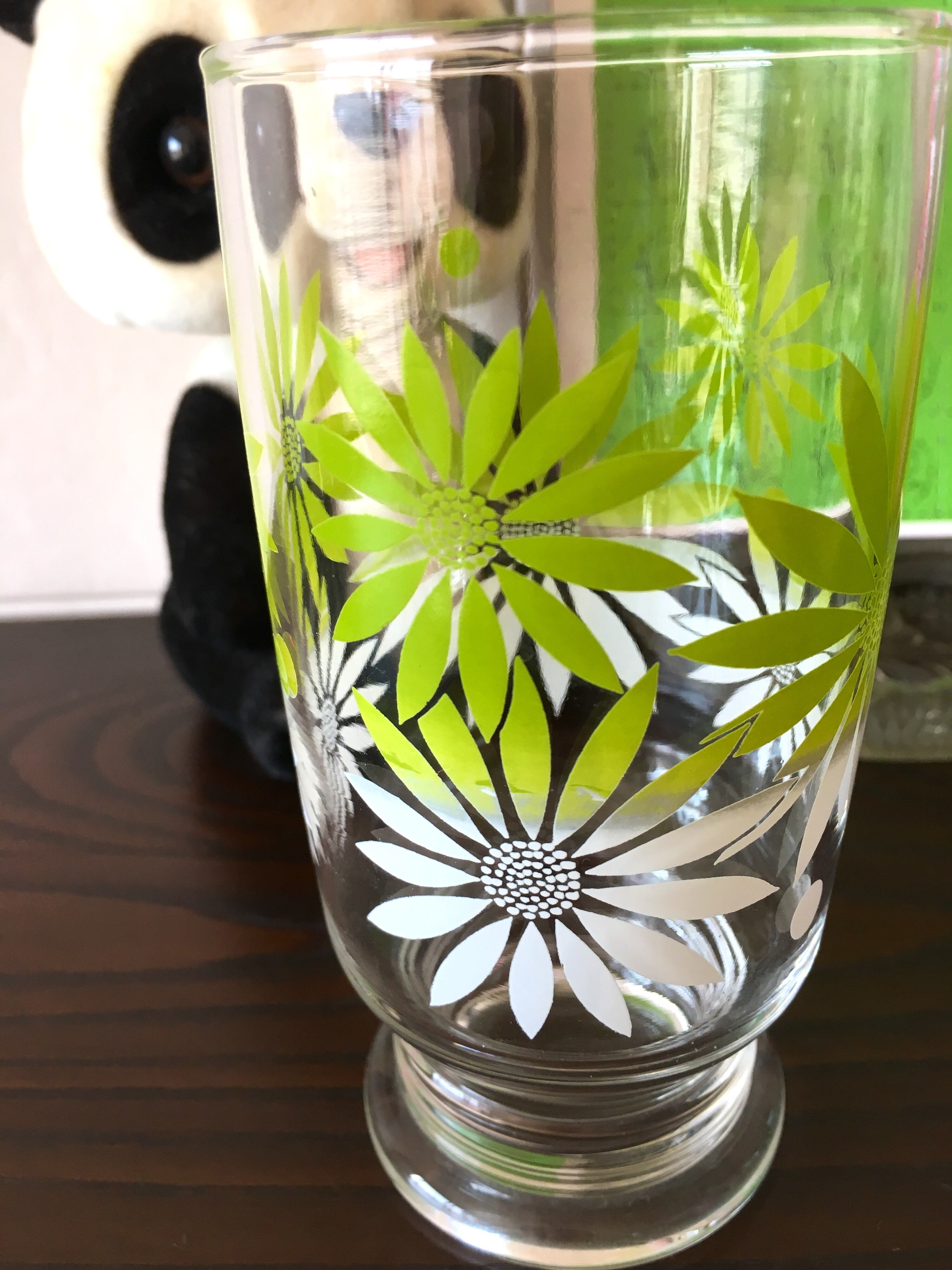 さわやかな色合いが可愛い、縦長のしっかりとした脚付のグラスです。