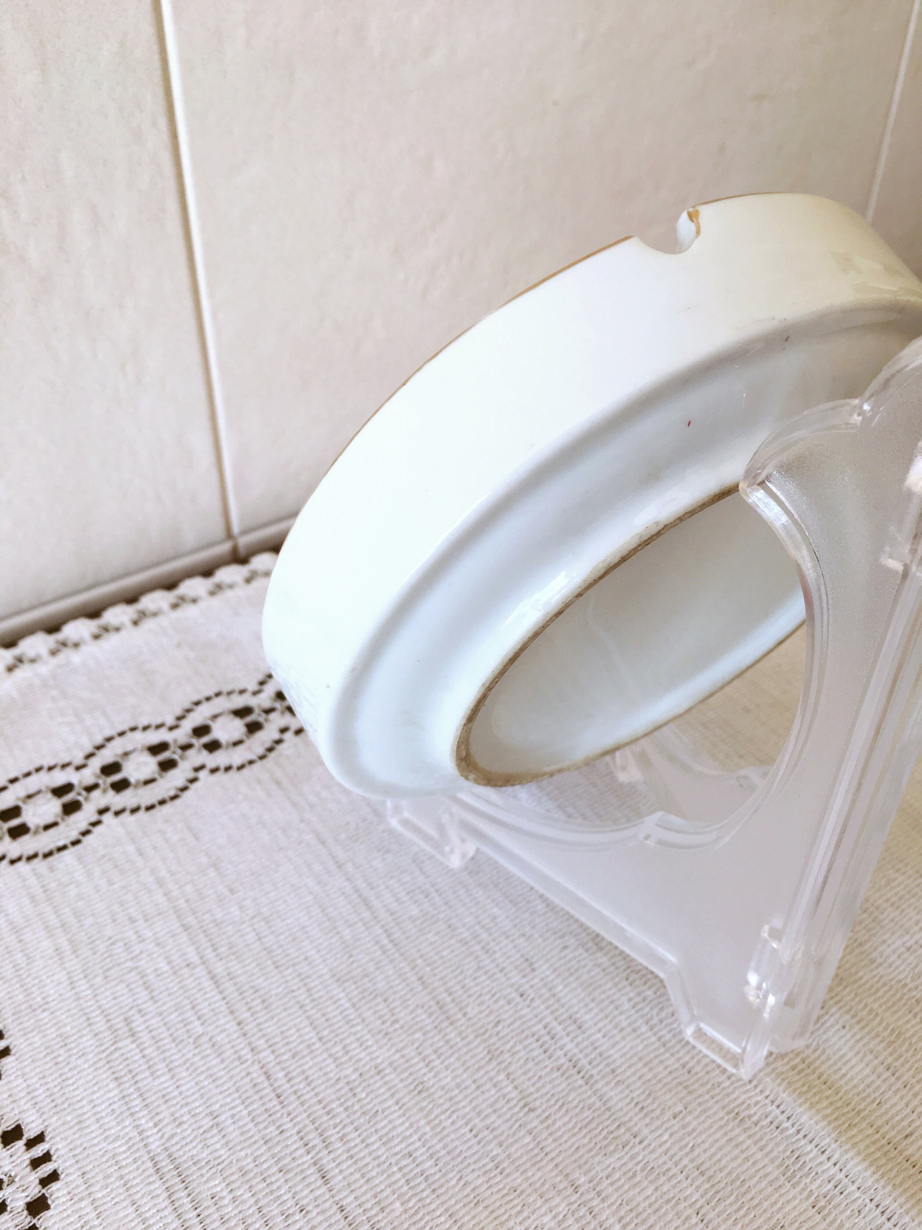 もともとの作りの粗さがあり、タバコを置くところは歪みがあります。絵柄、縁の金のライン部分に擦れがあるところがありますのでご確認ください。