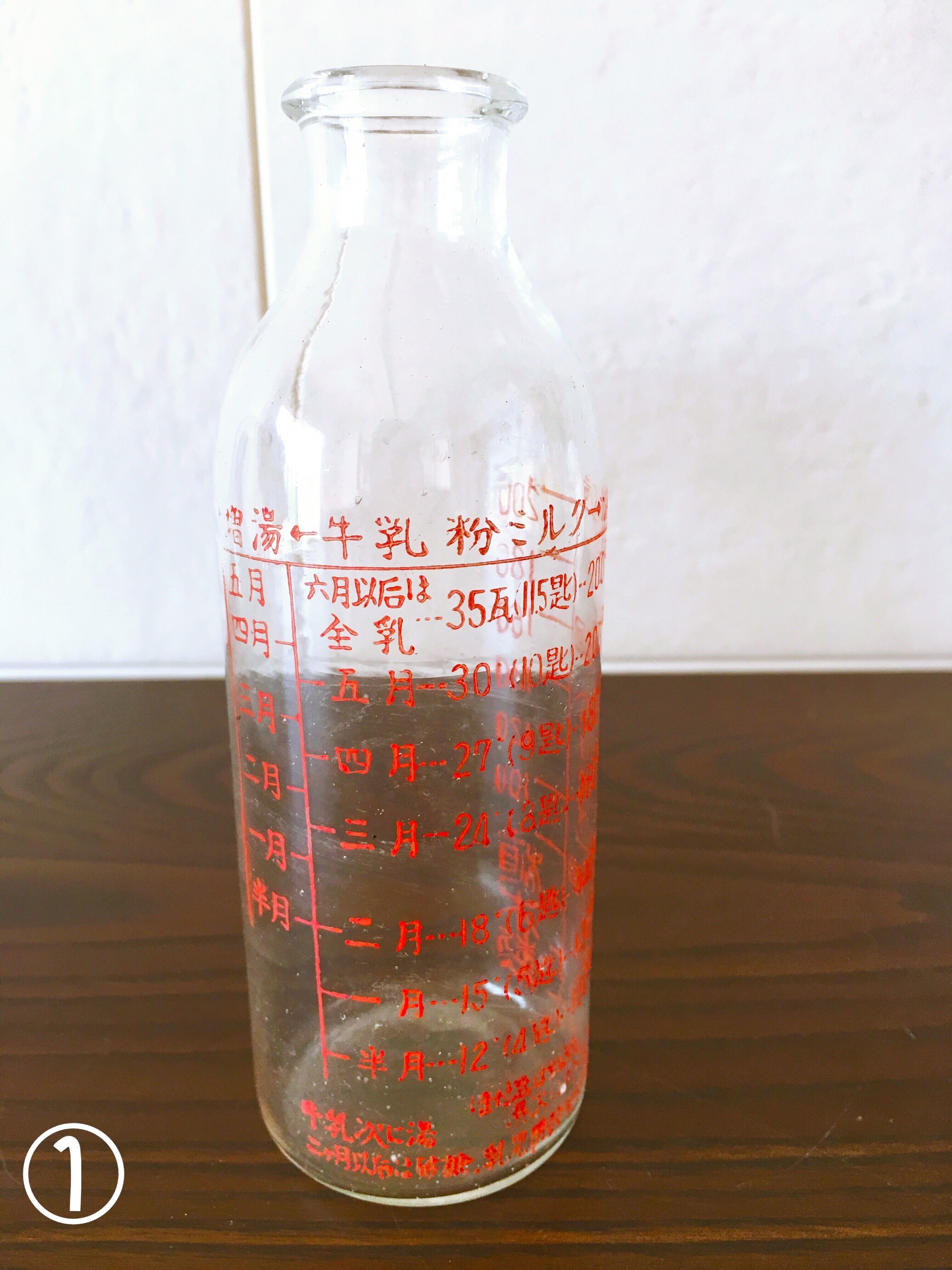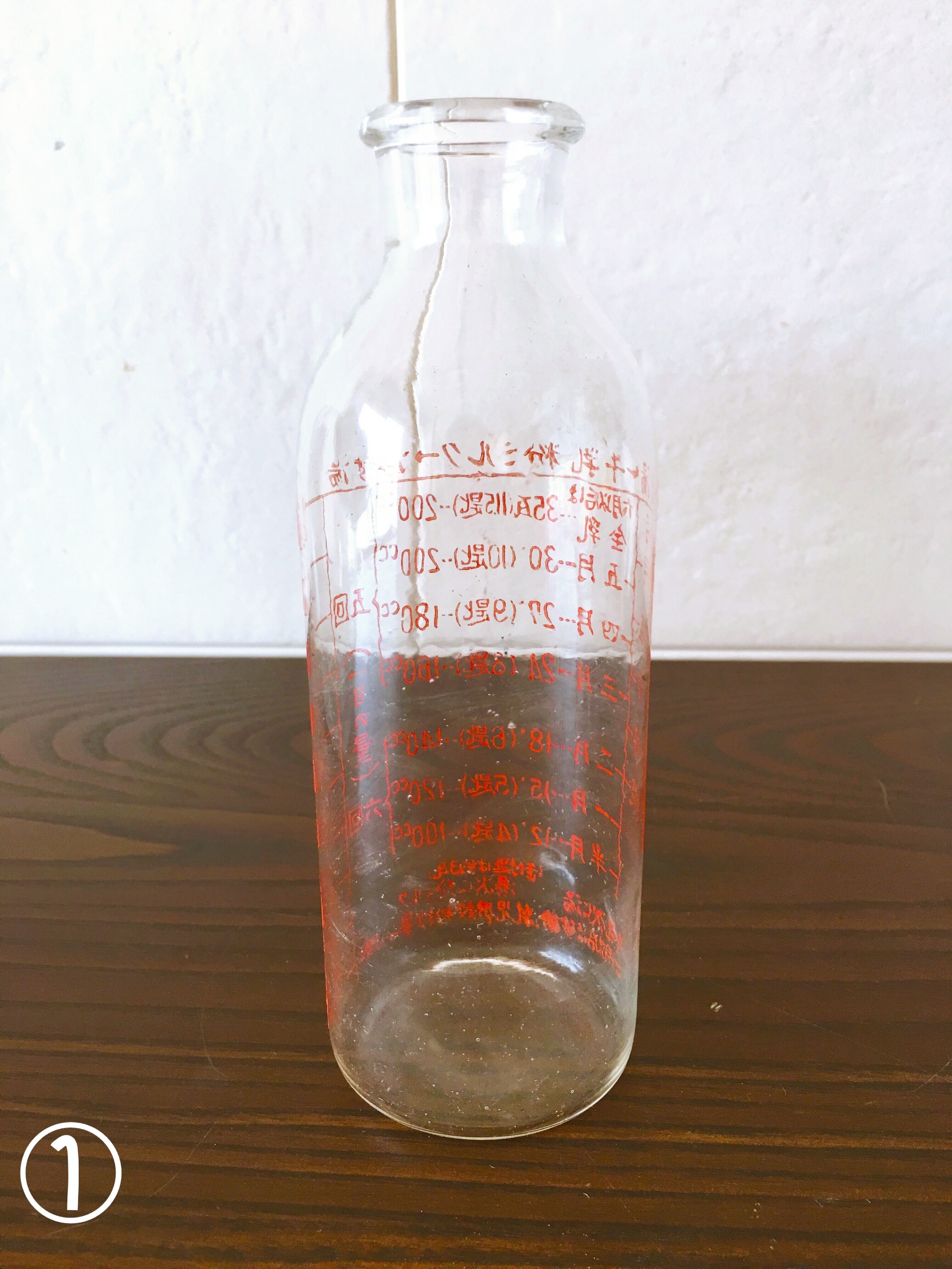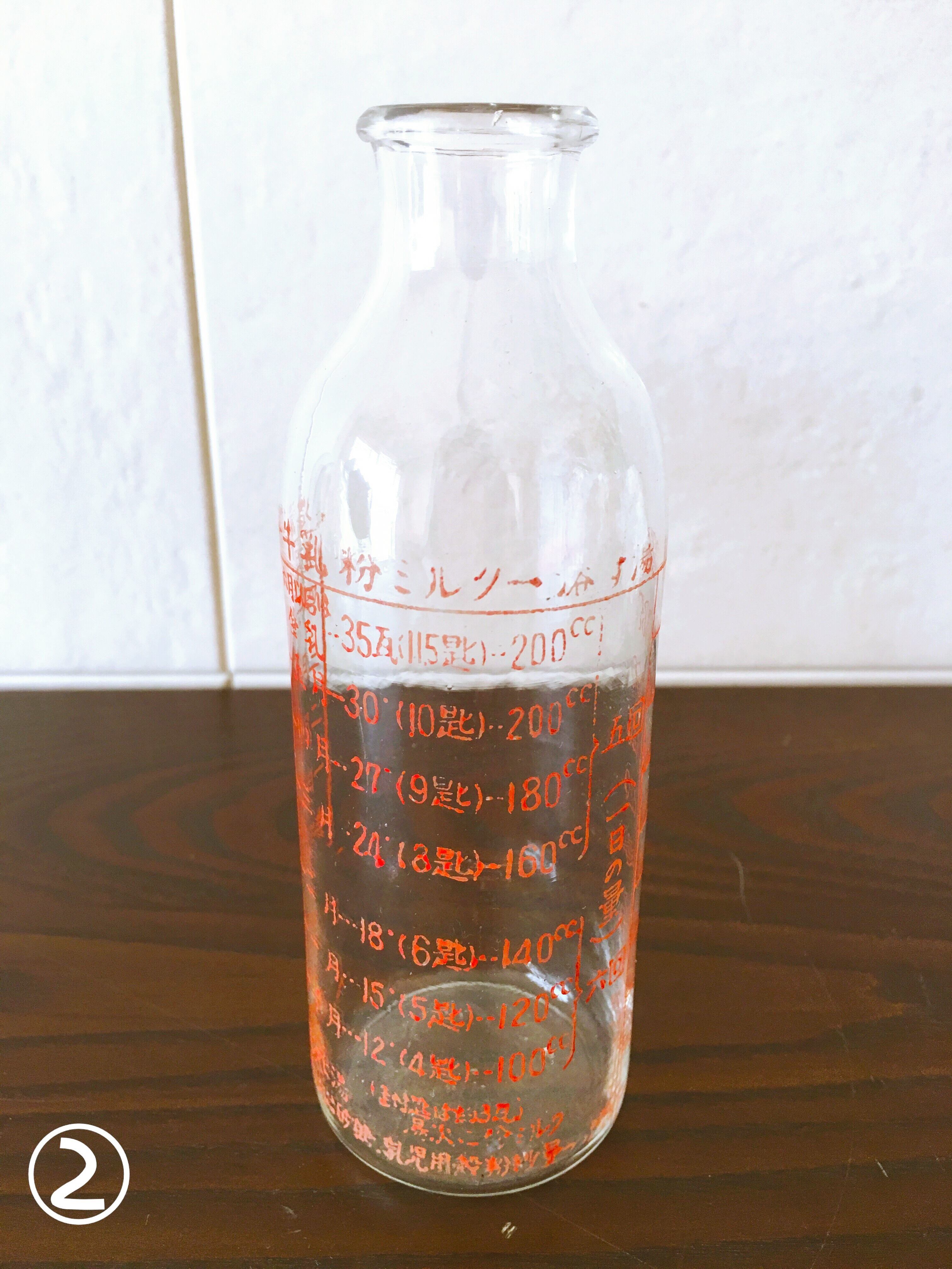 ヴィンテージ な雰囲気漂う、ガラス製の哺乳瓶です。