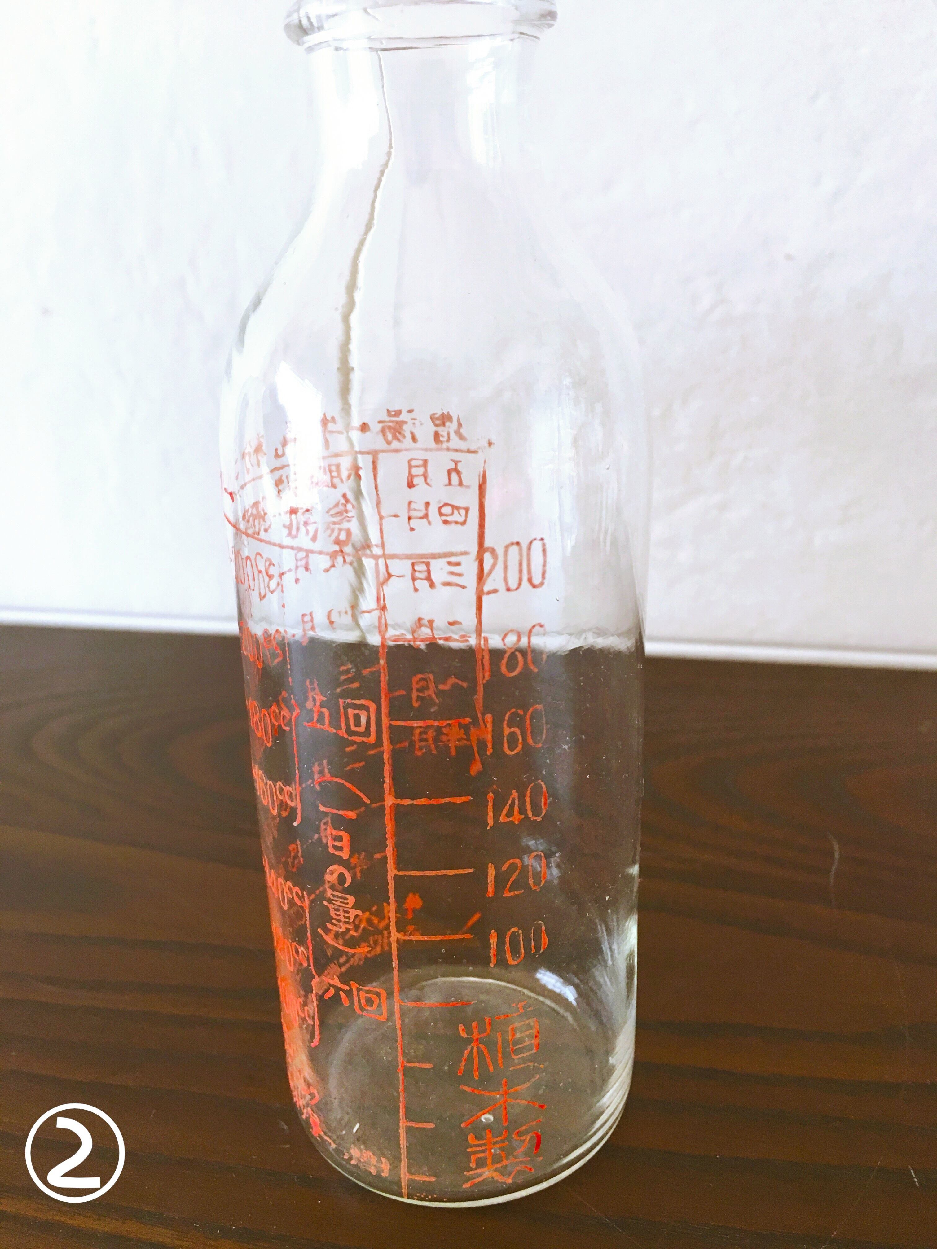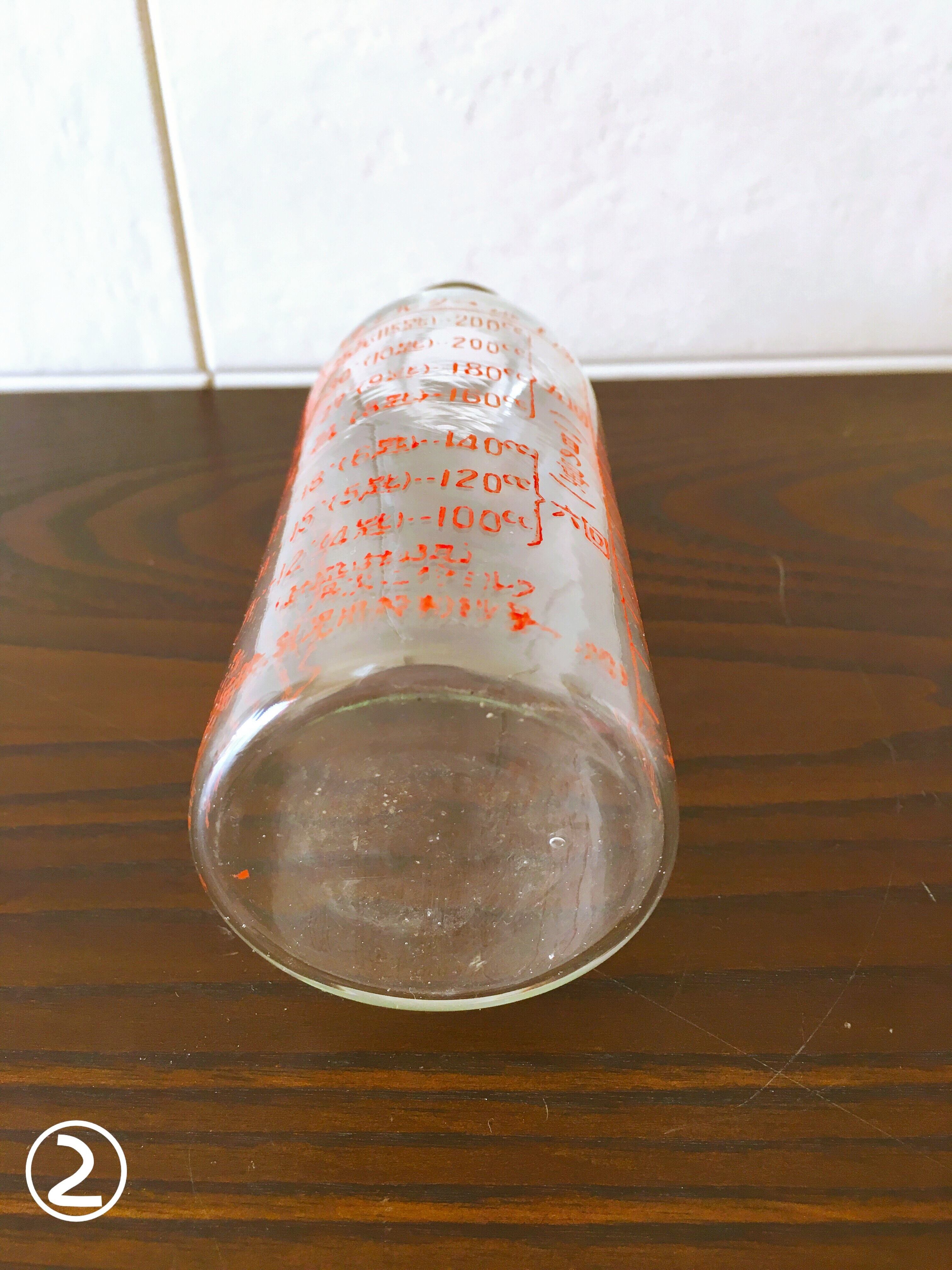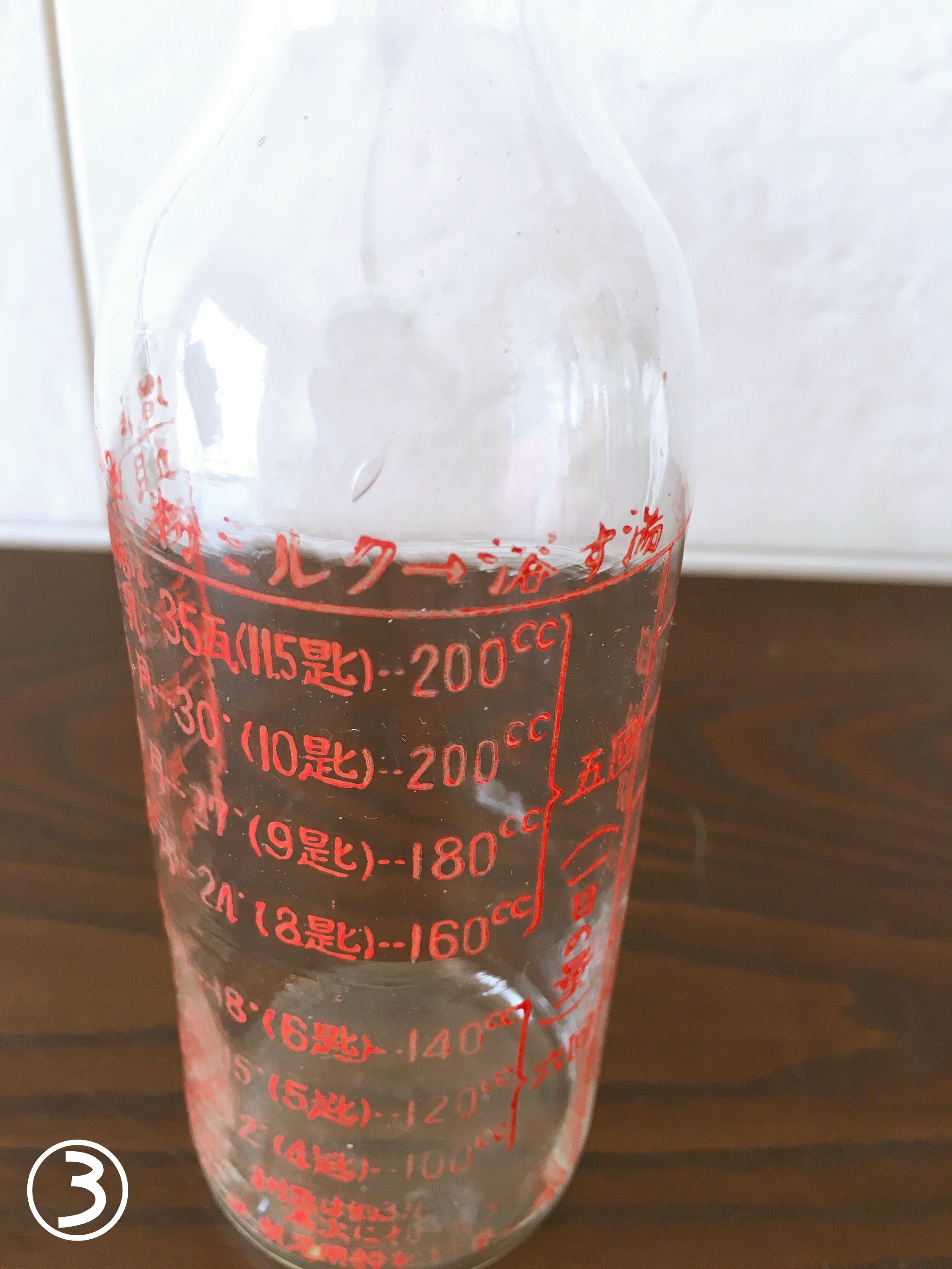 ヴィンテージ な雰囲気漂う、ガラス製の哺乳瓶です。