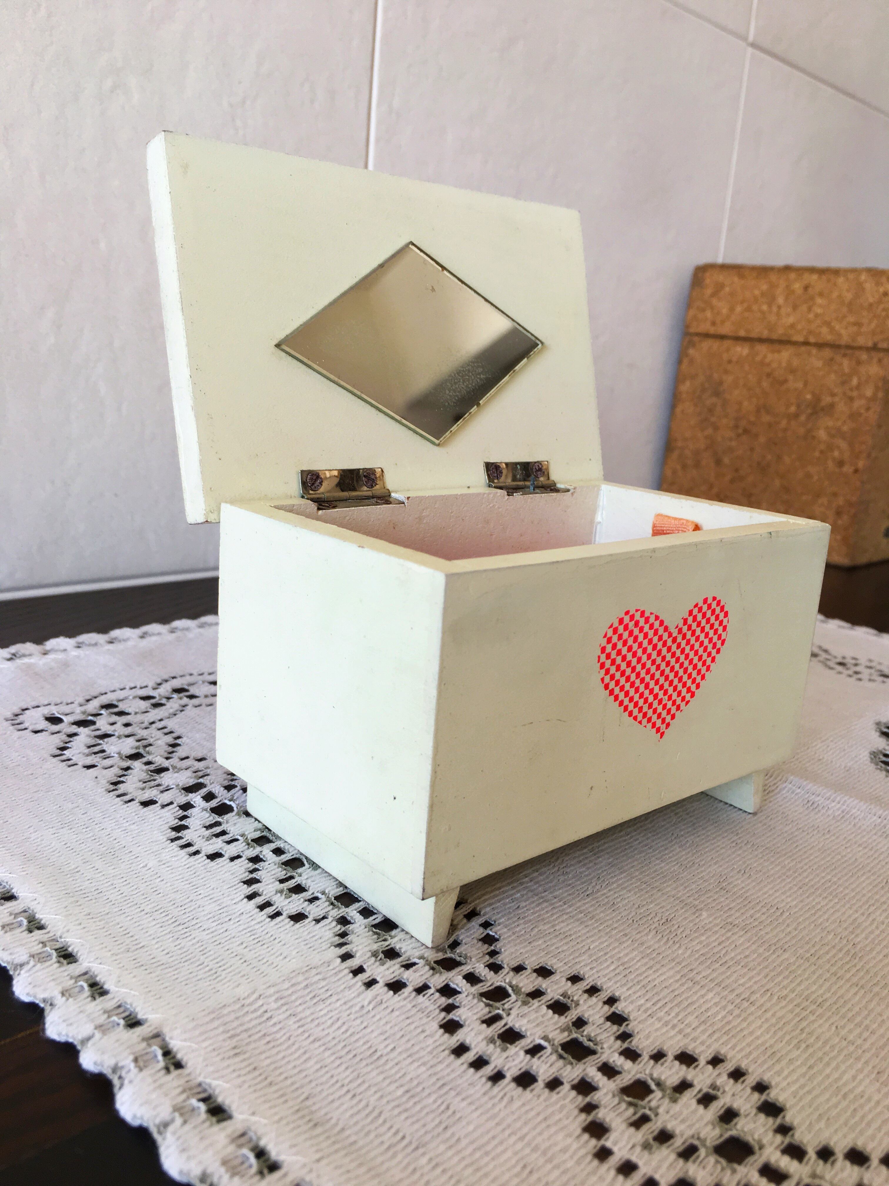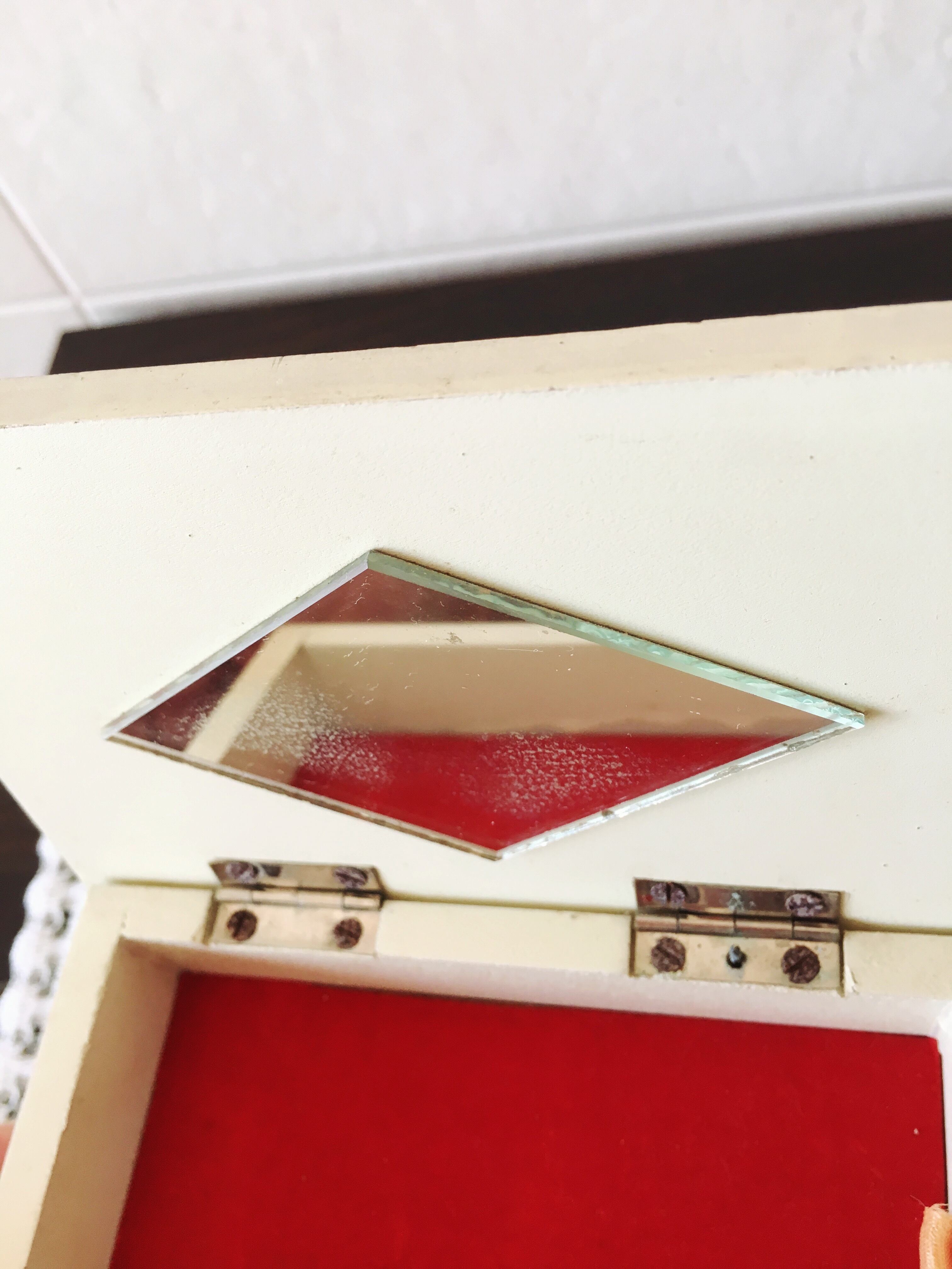 乙女柄がとても可愛い、木製の白いオルゴールです。