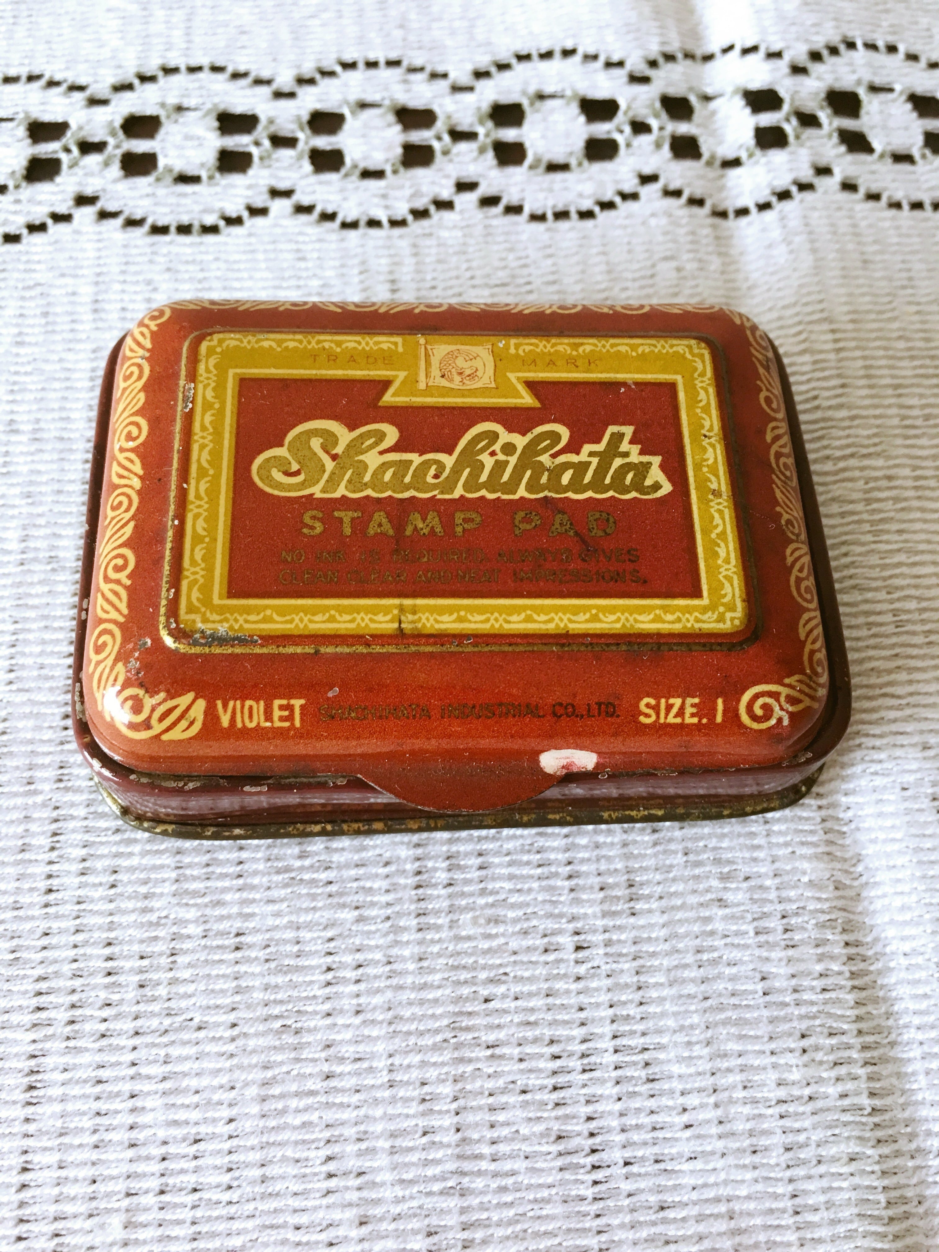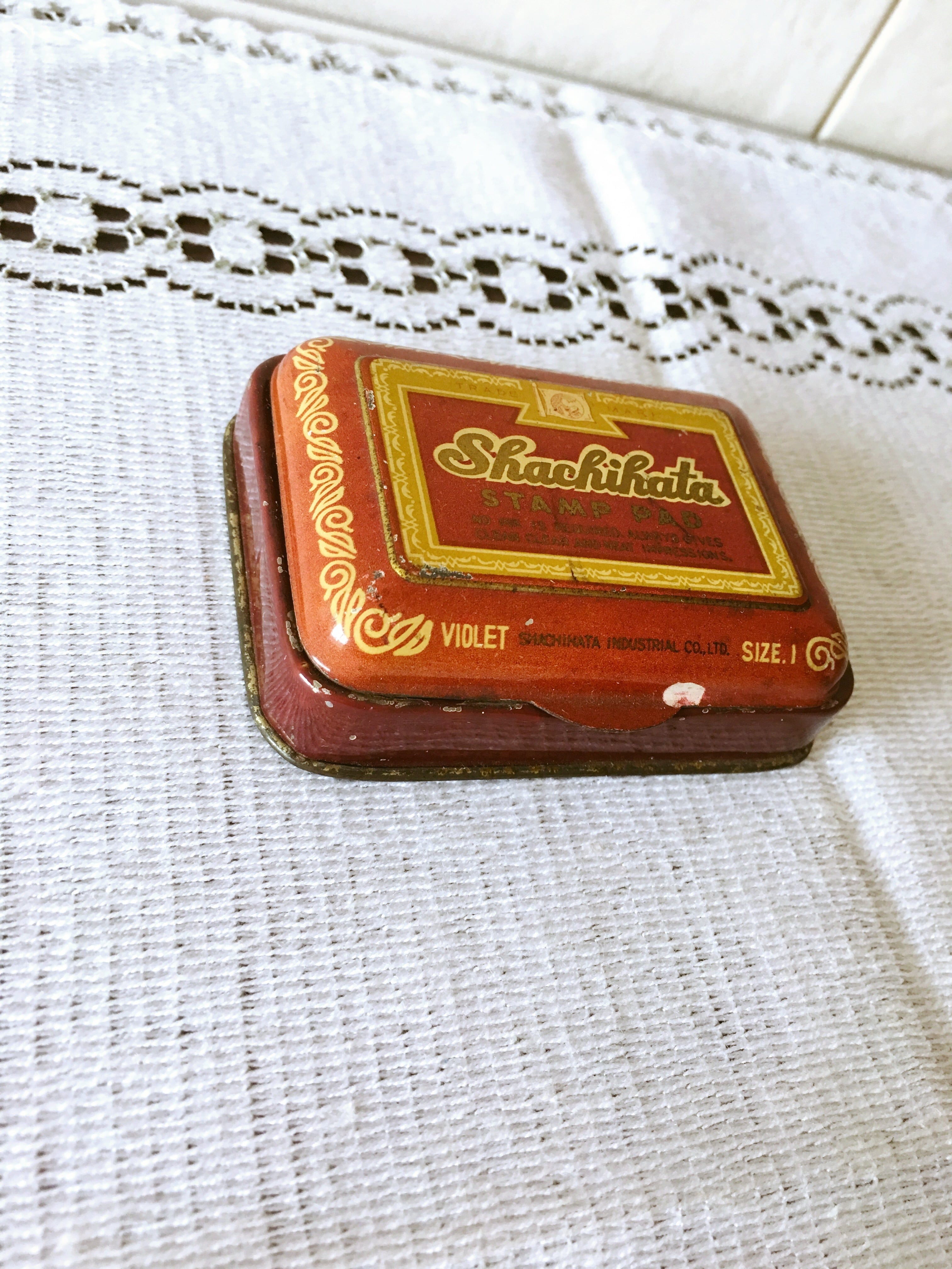 小さめサイズに厚みある佇まい、ヴィンテージ感がとても素敵なシャチハタのスタンプ台です。