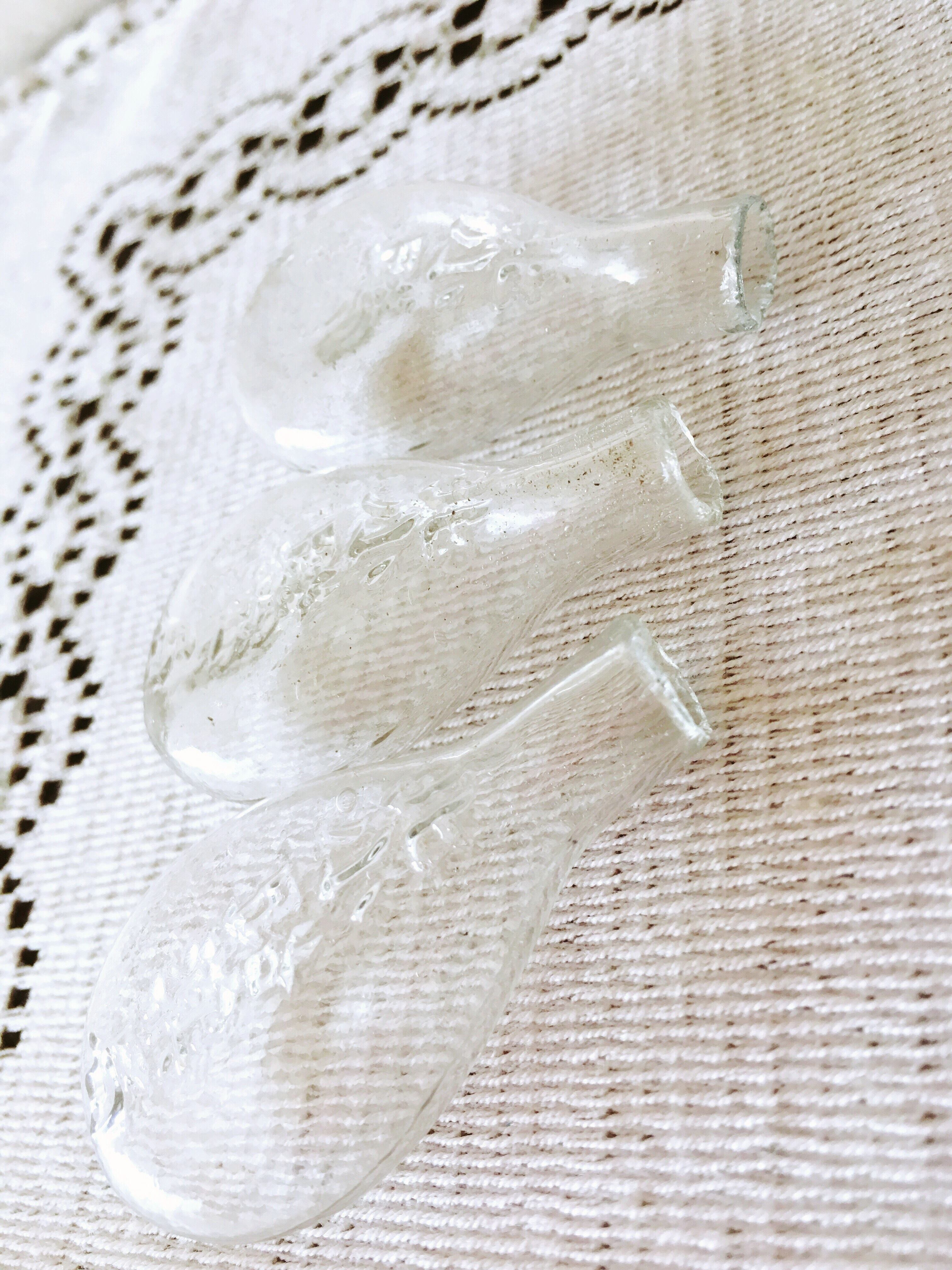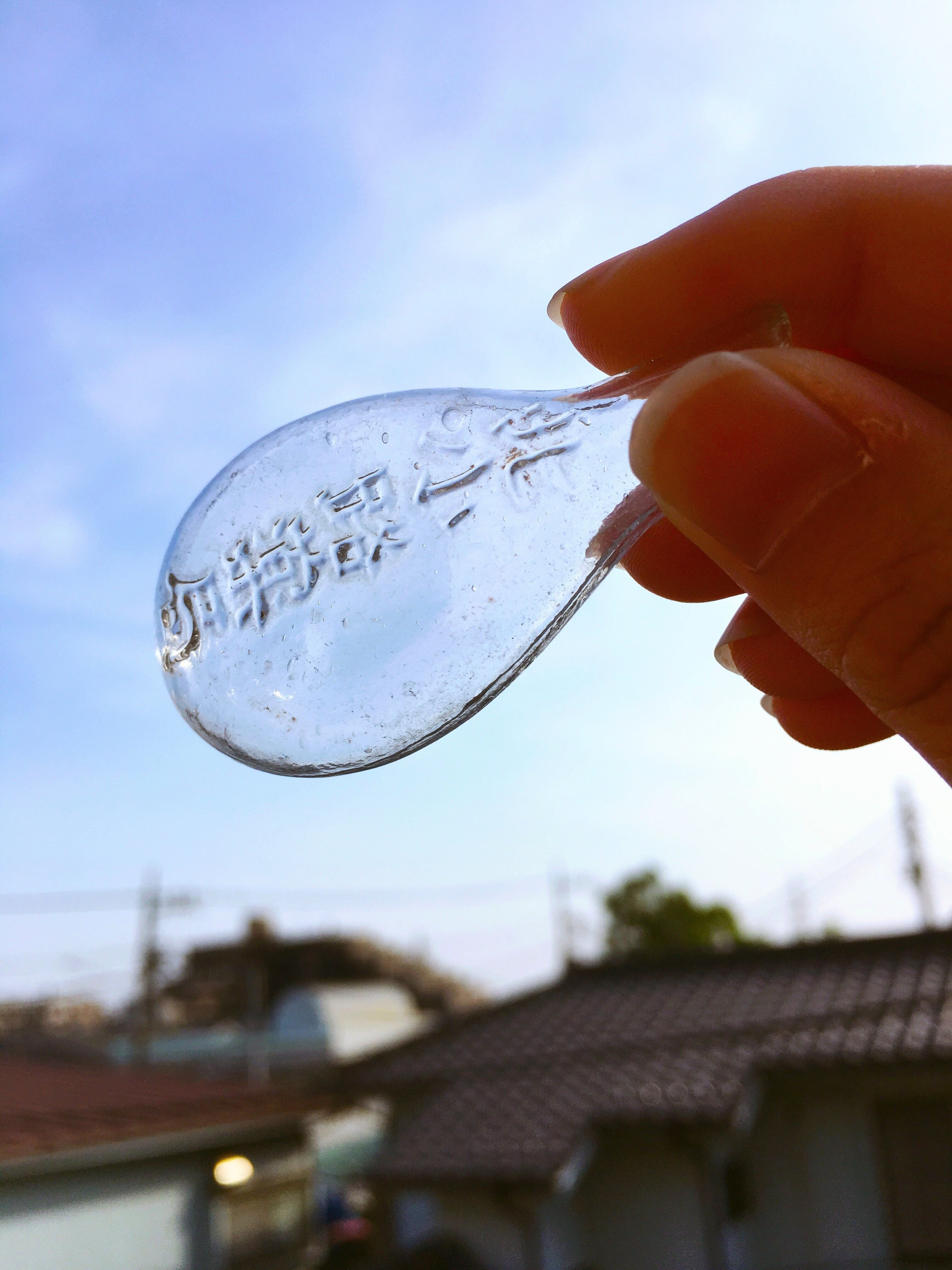 とても古い、戦前の薬局名の入ったガラスの小瓶です。