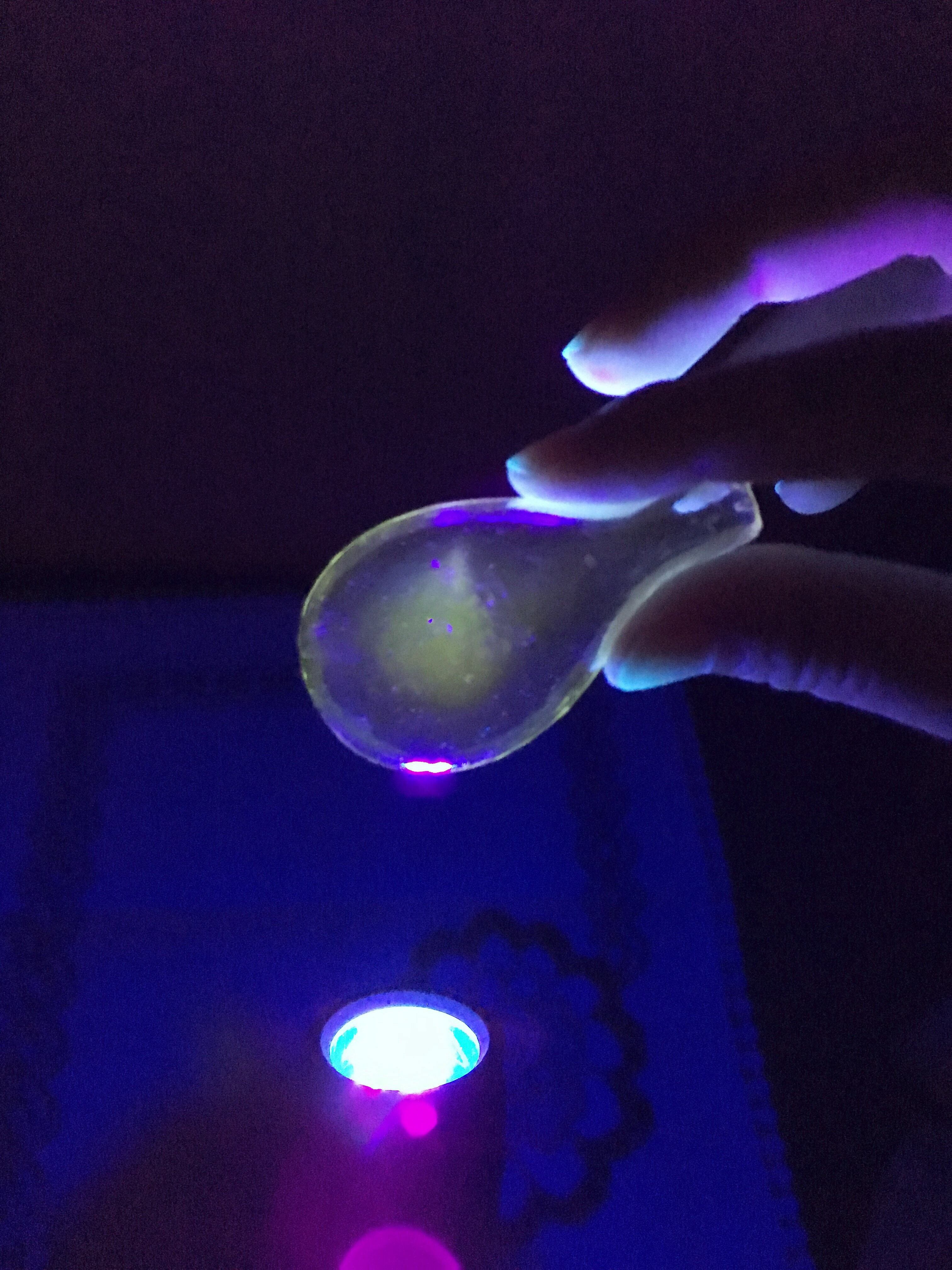 ウランガラスならではの、ブラックライトを当てると発光致します。
