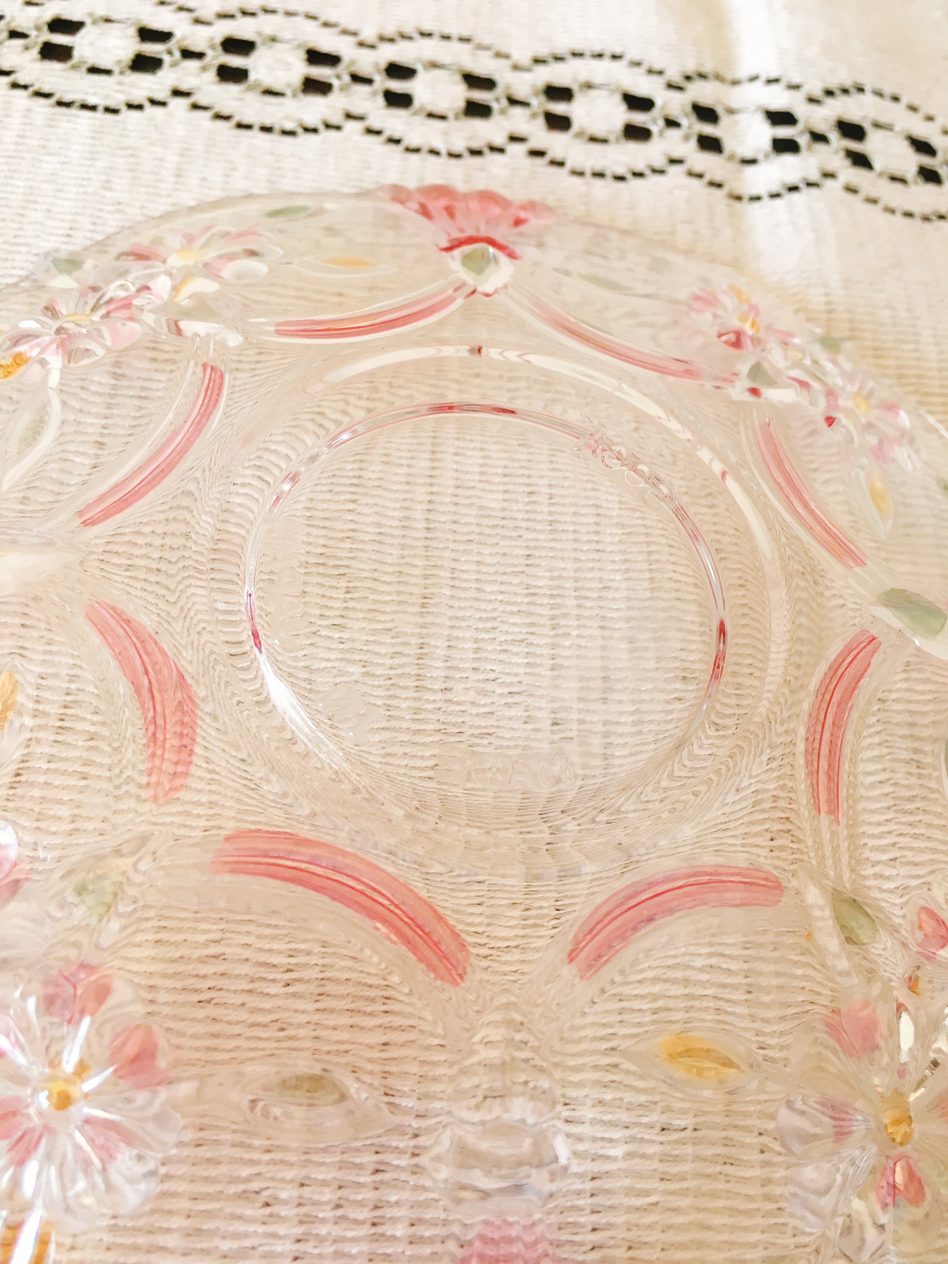 ピンクのお花の他、ところどころに使われたグリーンやイエローのガラス部分も綺麗で見とれてしまいます。