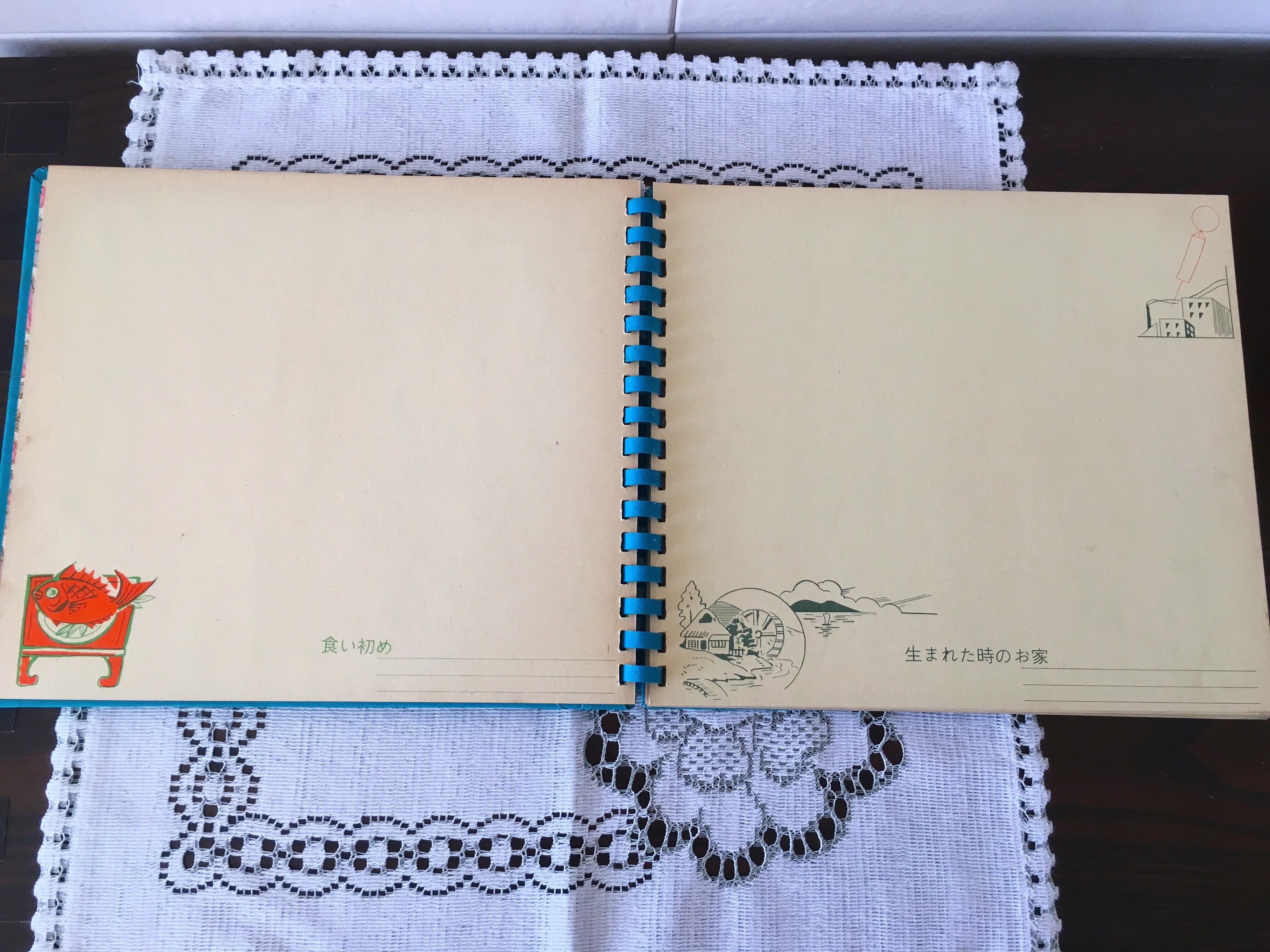 画像6枚目、お七夜のところに鉛筆で落書きをした跡があります。その他のページに書き込みはございません。