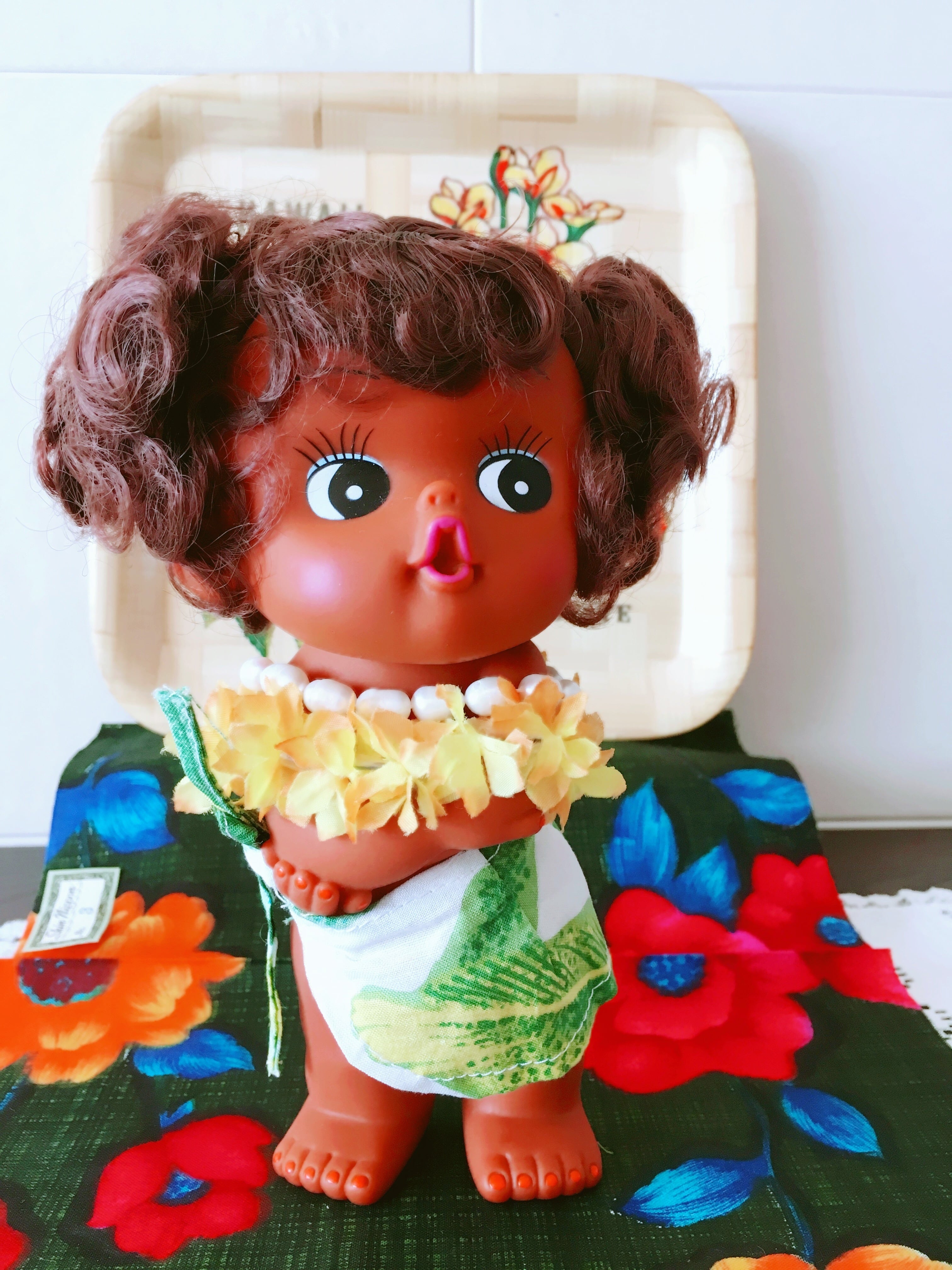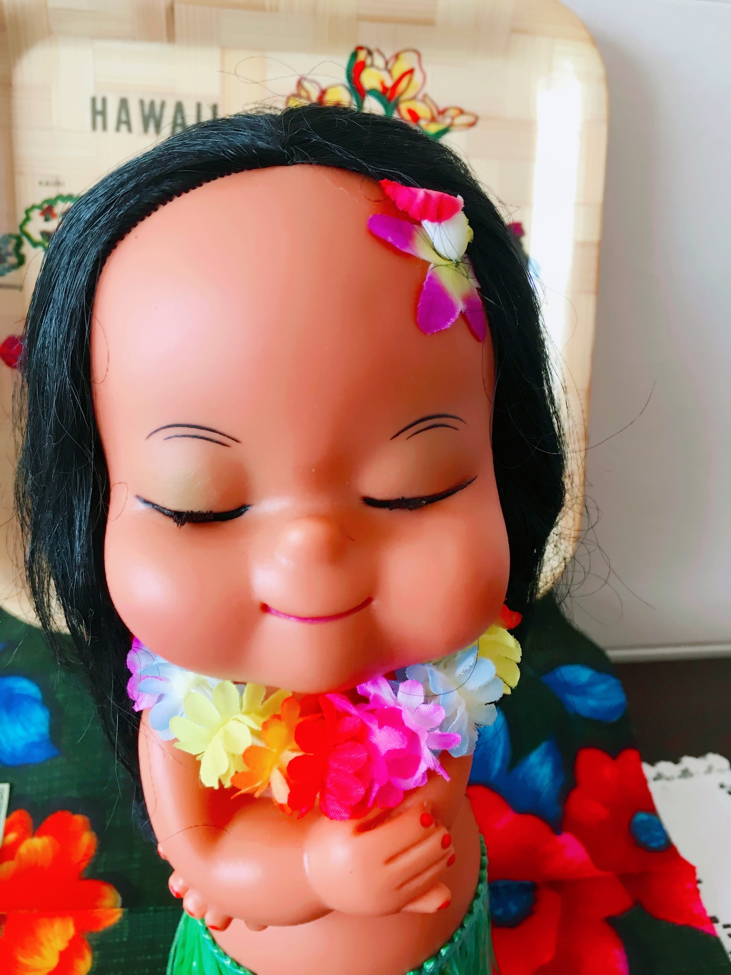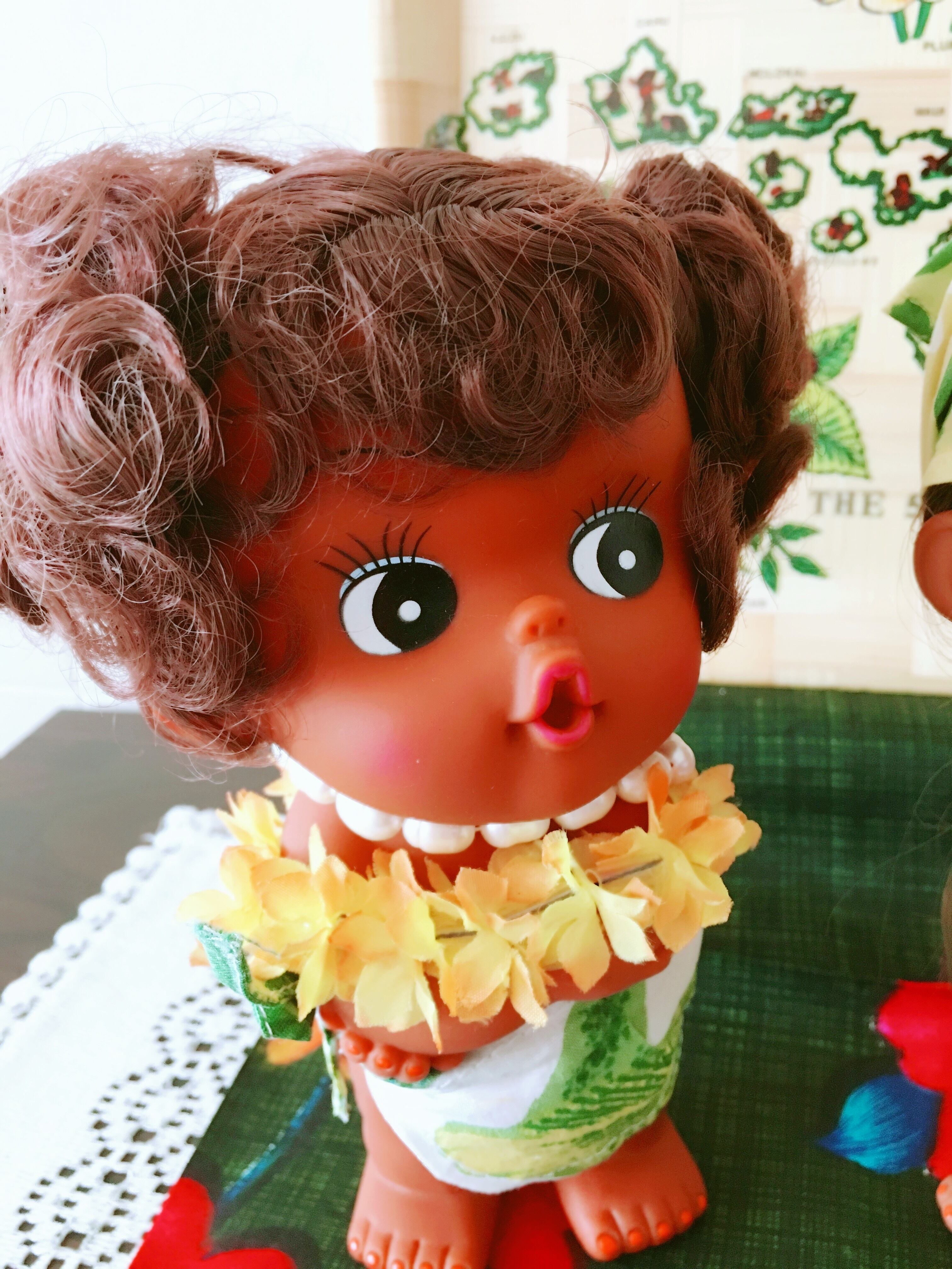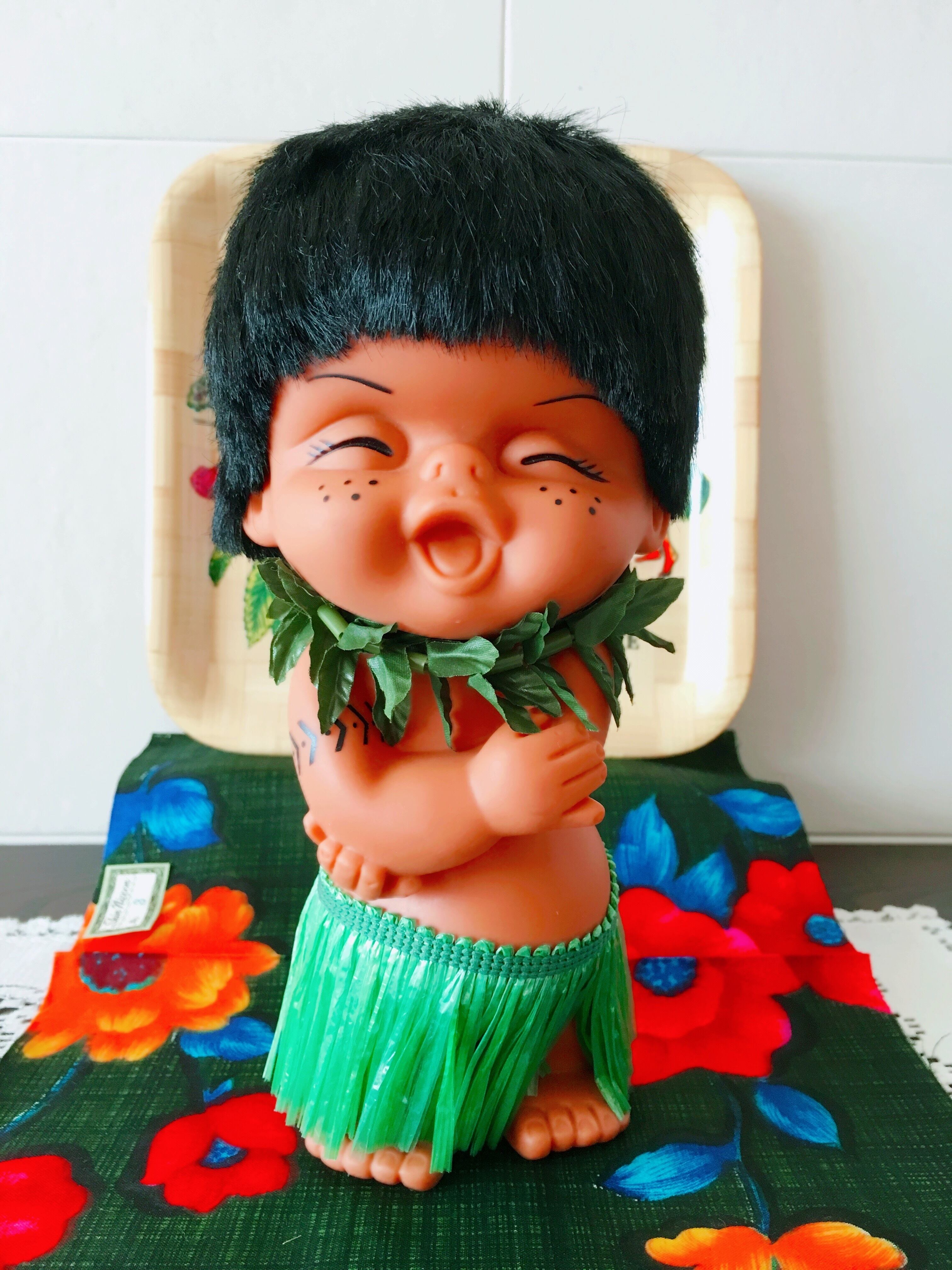 可愛らしい表情の、レトロなハワイアン人形です。