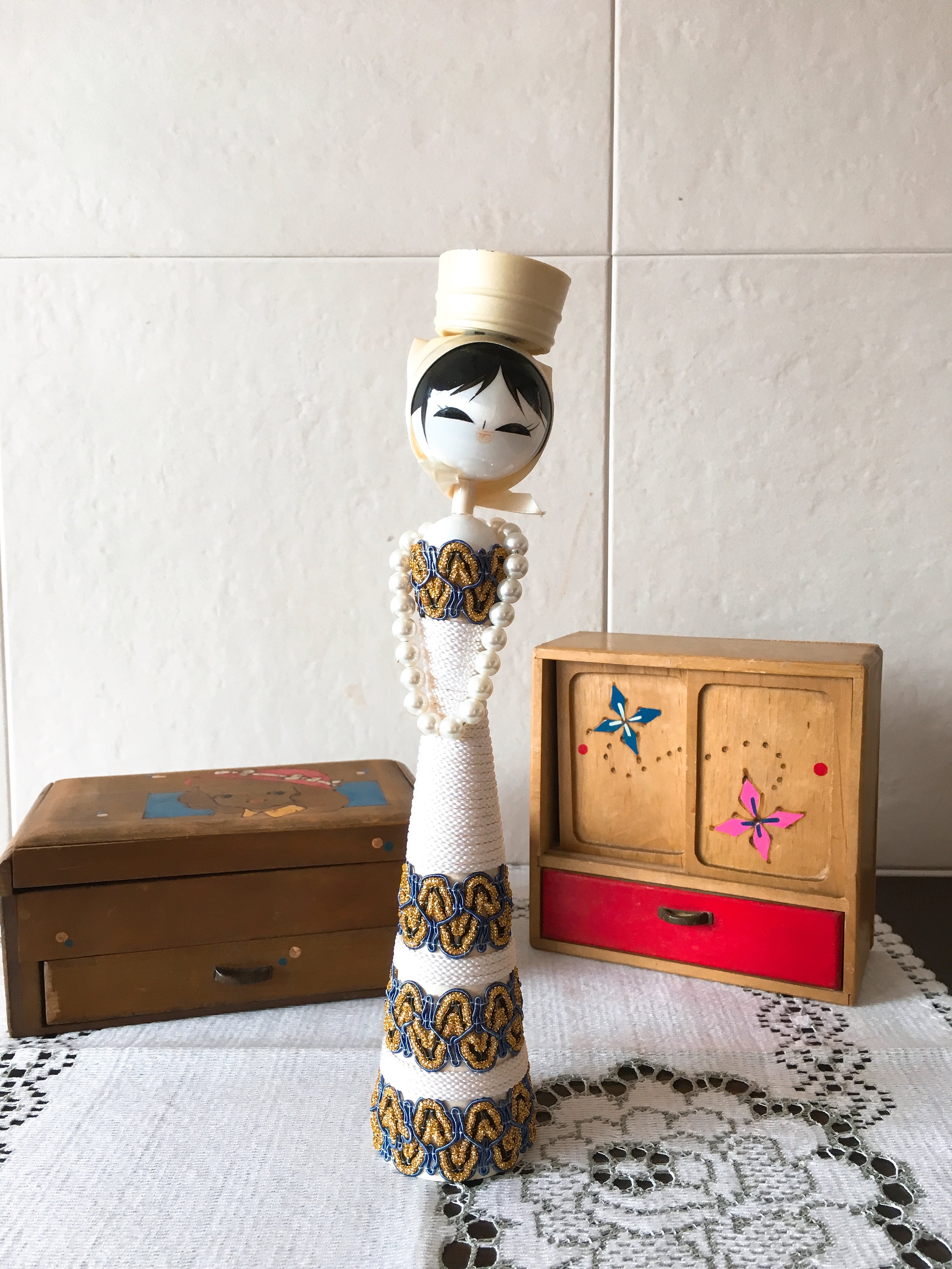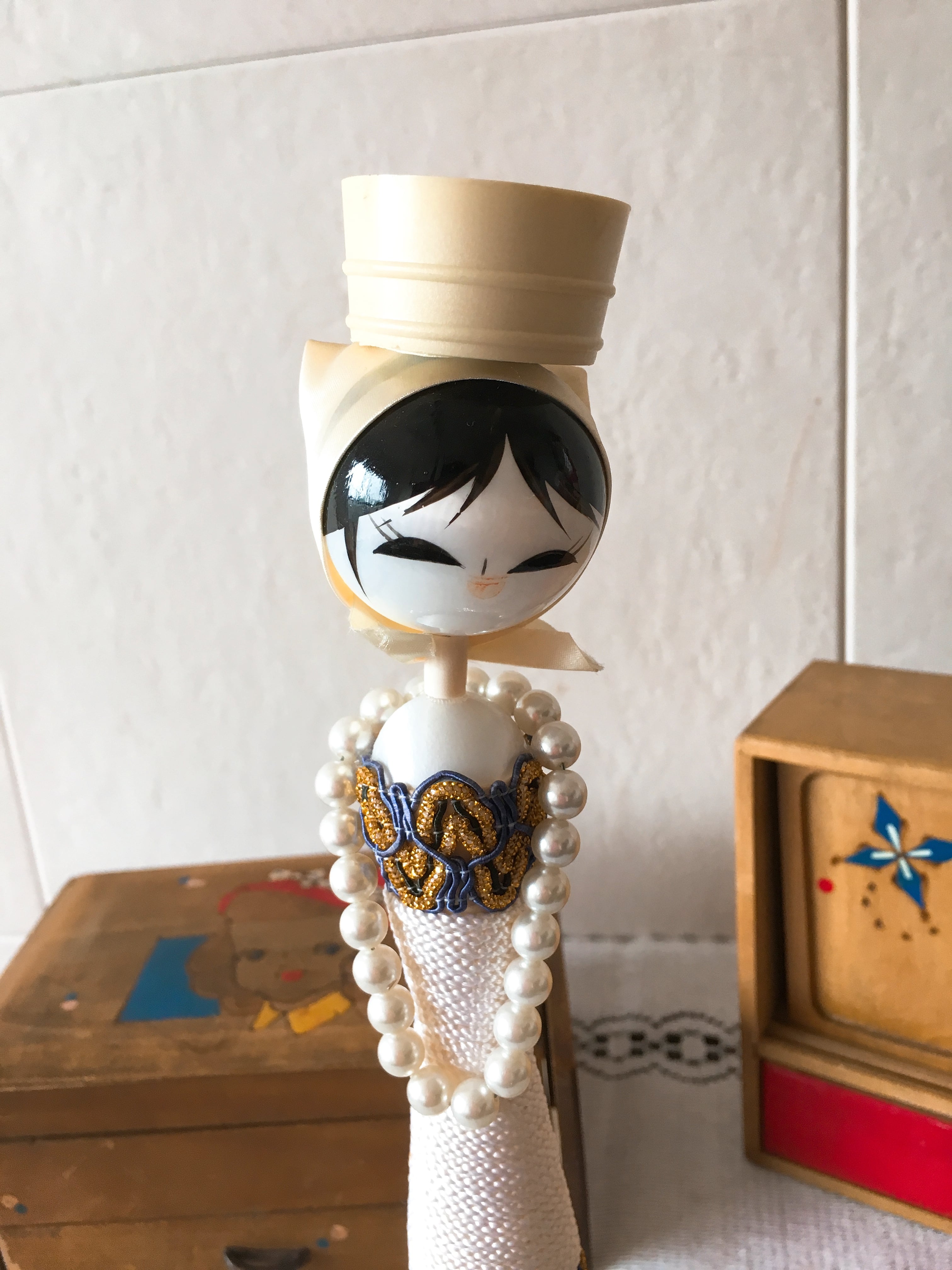 レトロで可愛い、パールが素敵などりーむ人形です。