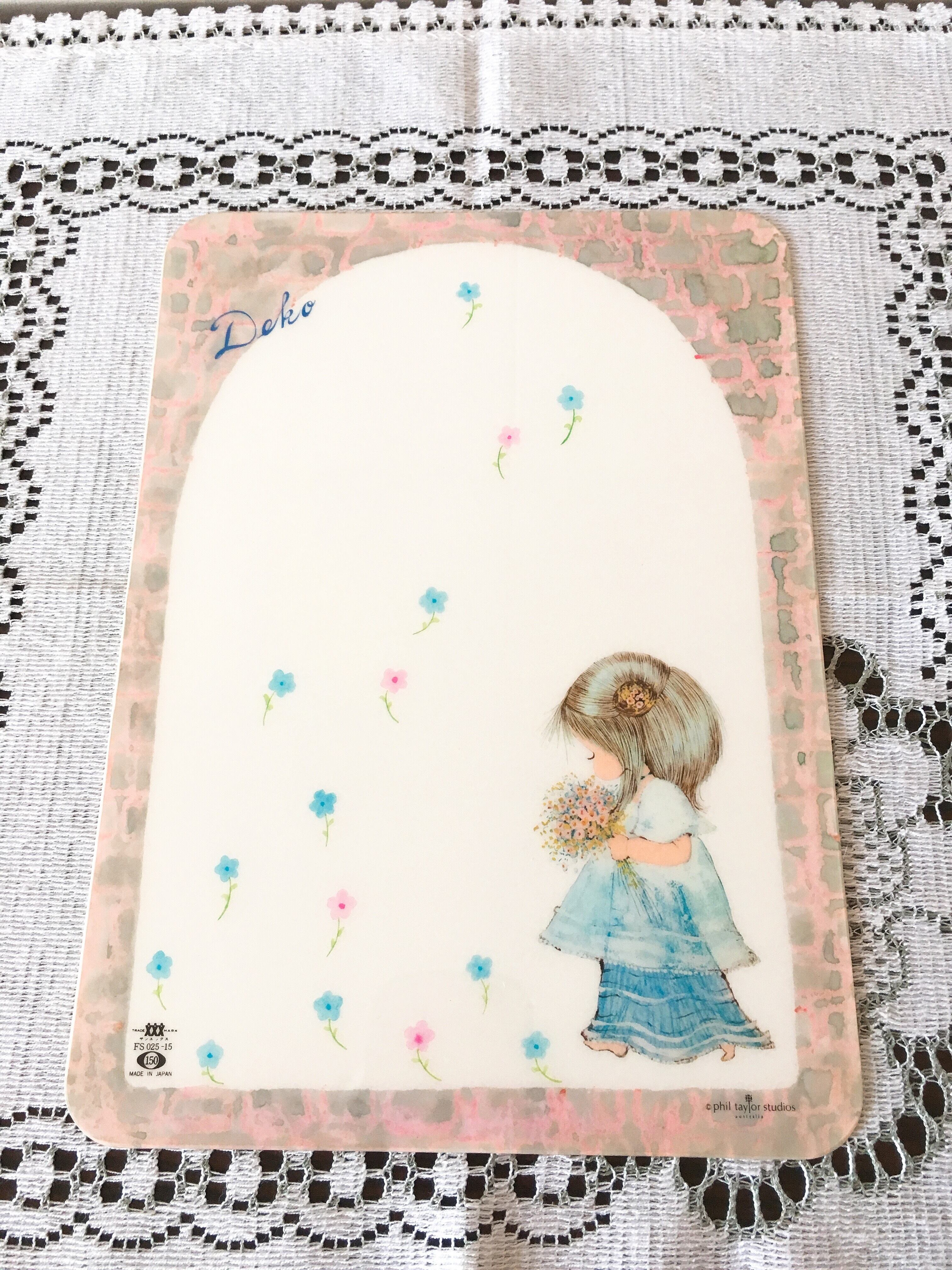 ほのぼのとした素朴な女の子が可愛らしい、下敷きです。