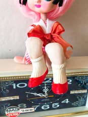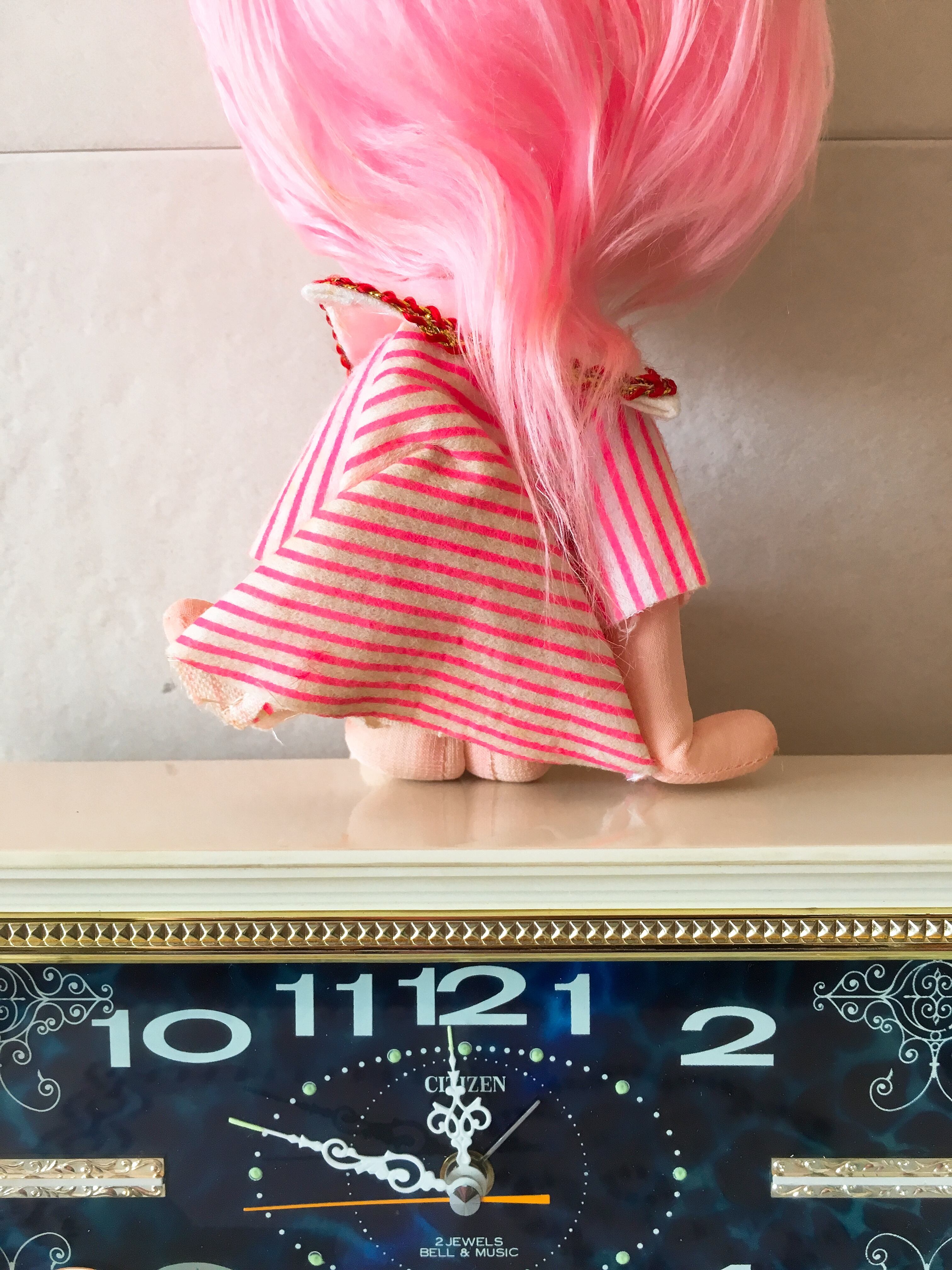 ピンク色の髪の毛にサイドの黒のベルベットリボンがとてもおしゃれな、ポーズ人形です。