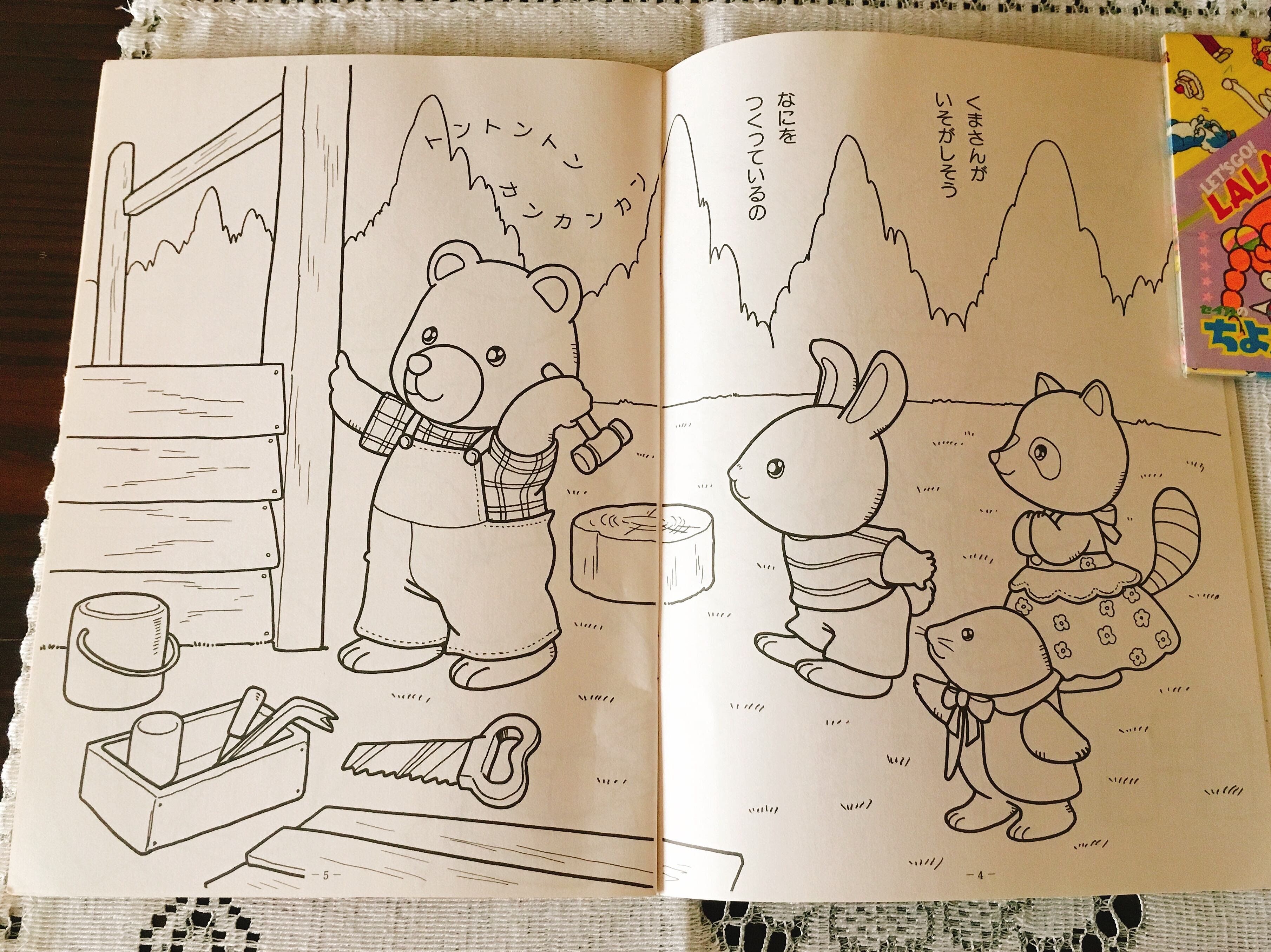 こちらのぬりえは、その村のベーカリーができるまでストーリー仕立てになっており、全部塗るとまるで絵本のようになります。