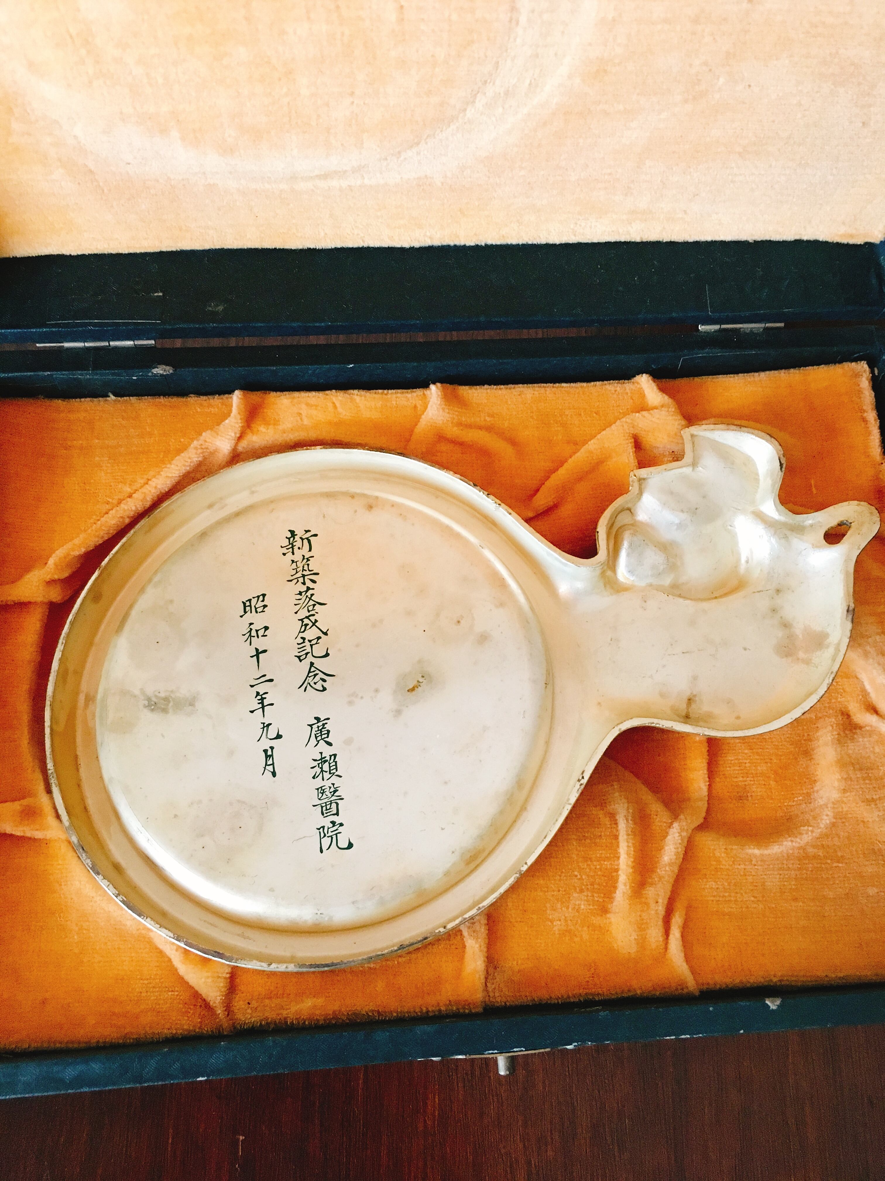 昭和12年9月、医院の新築落成記念とある、ひょうたんの形をした置物です。