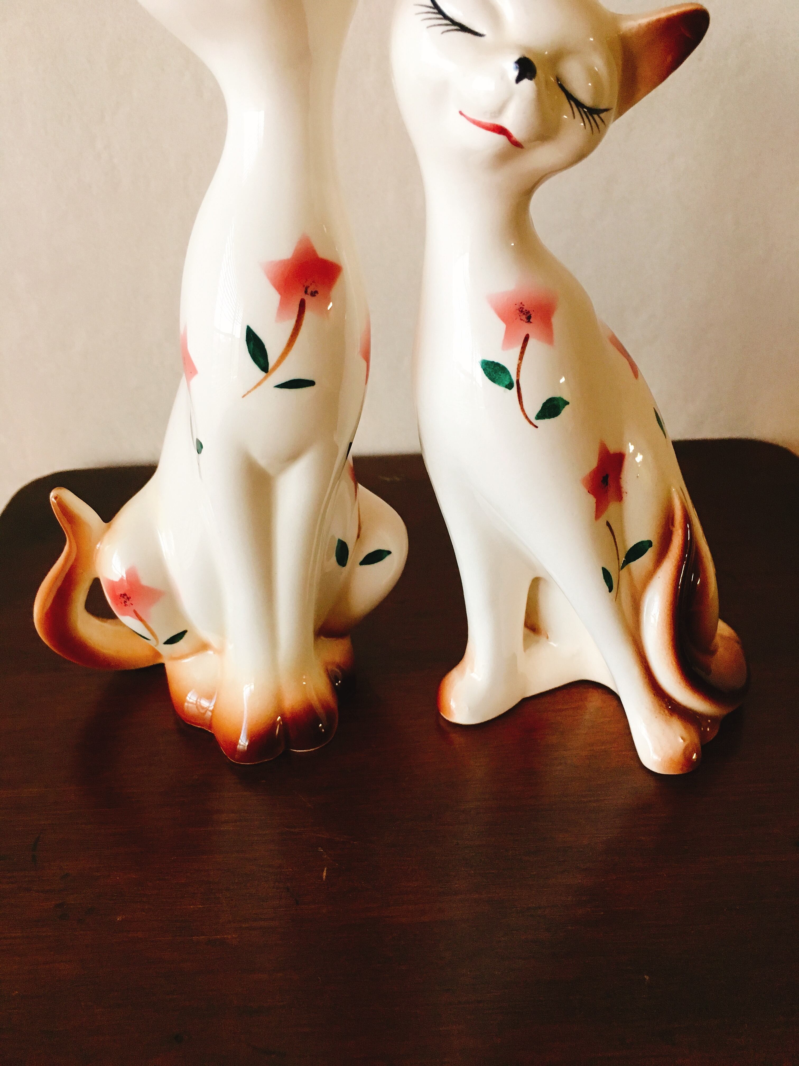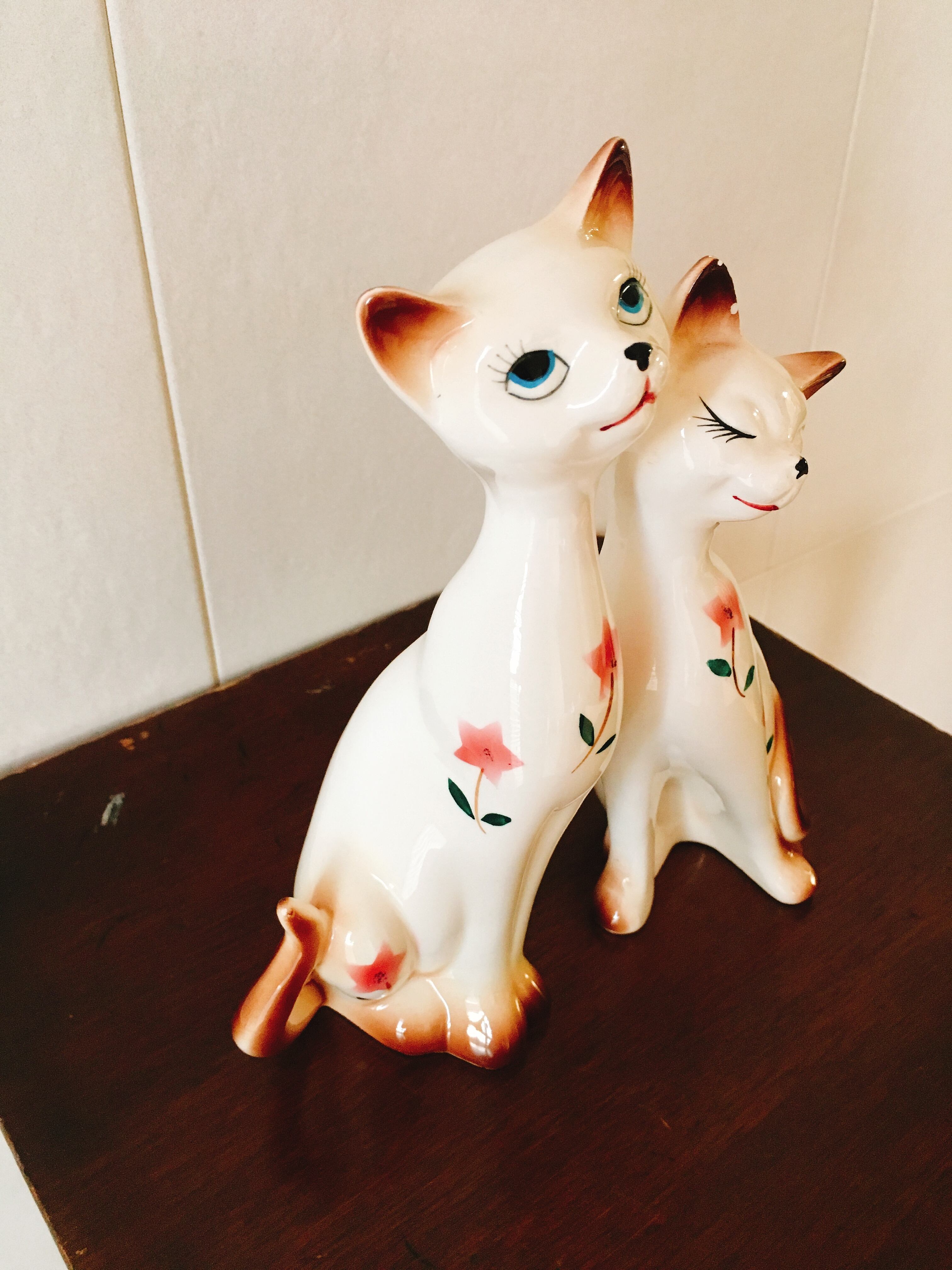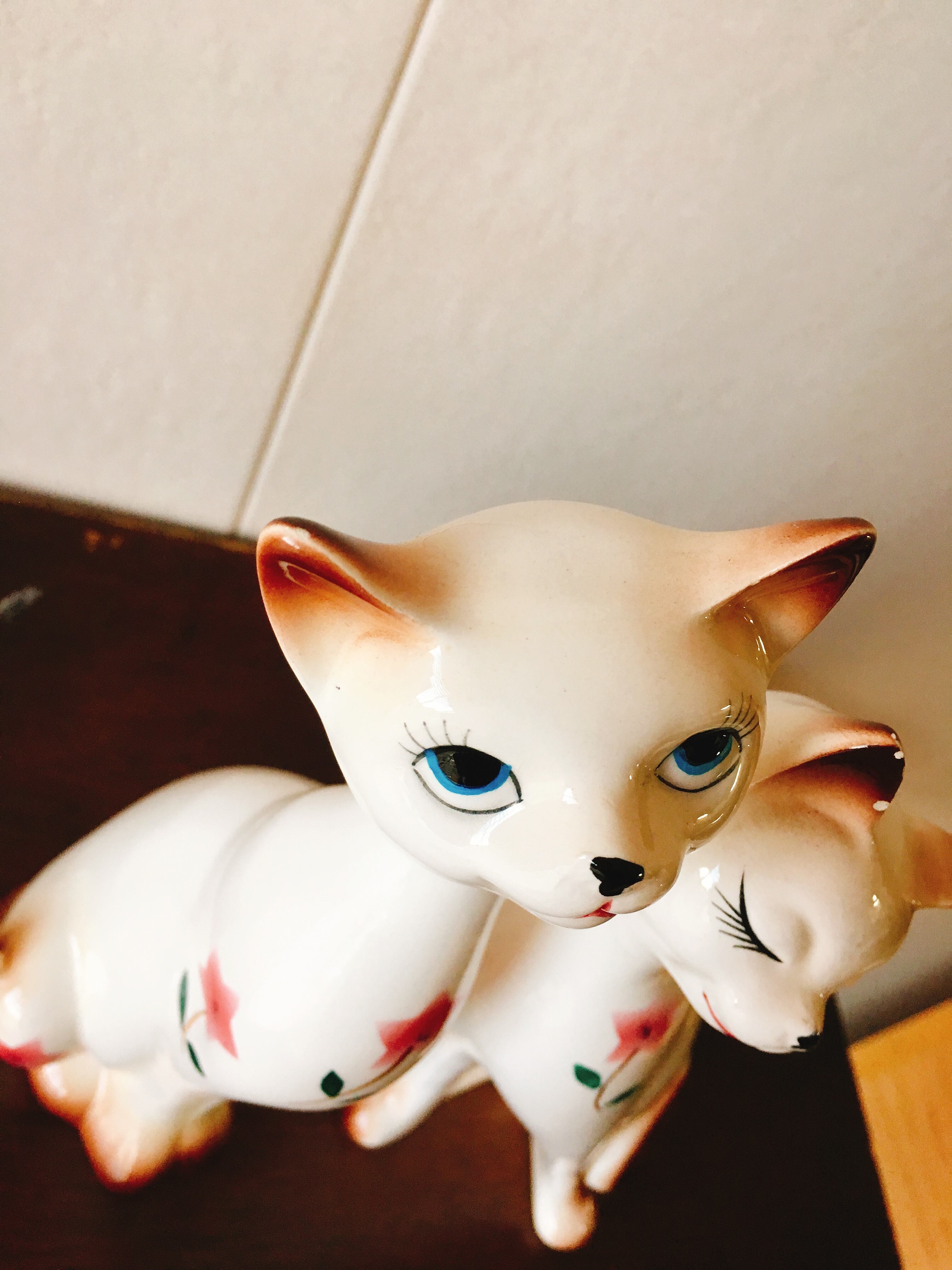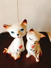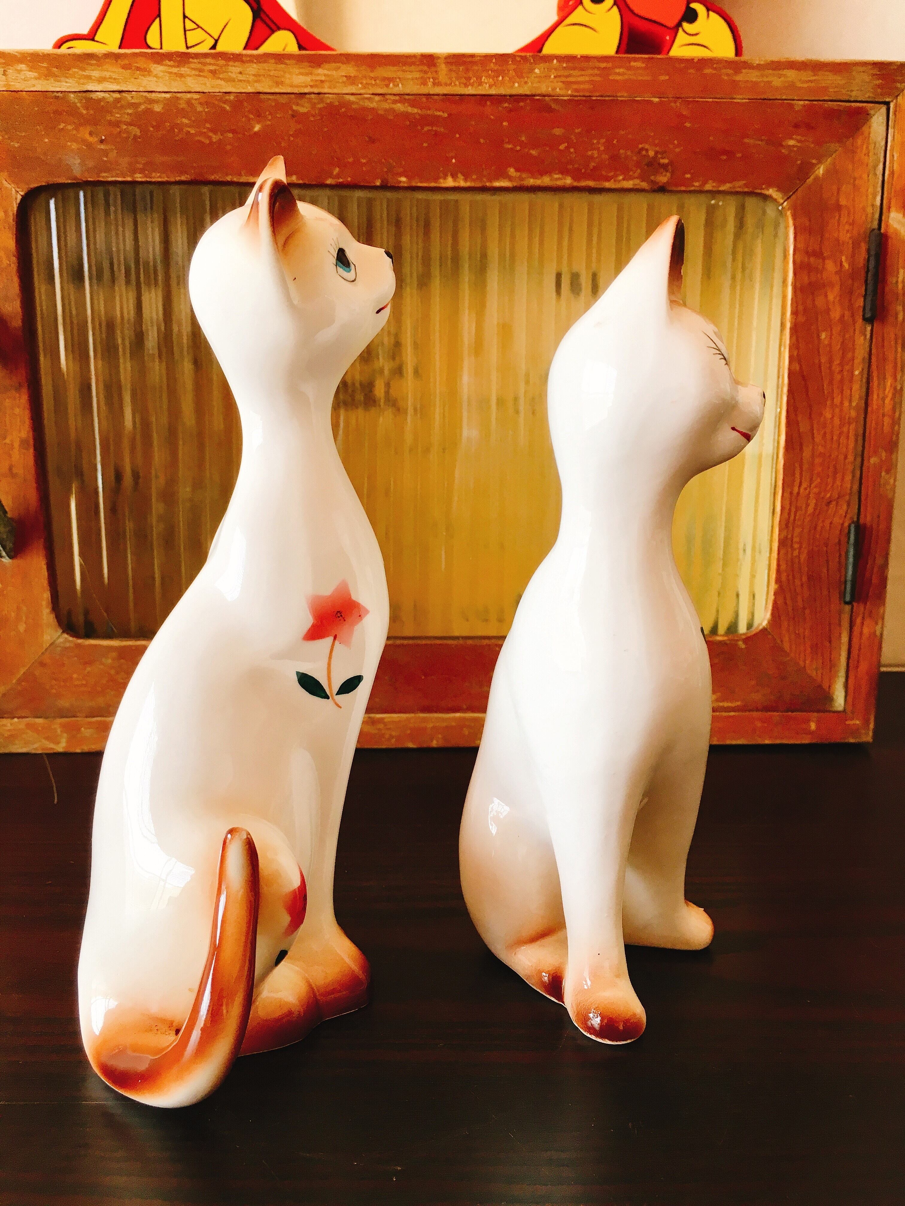 上目遣いや目を閉じている表情がとても魅力的な、陶器製のネコちゃん、ペアになります。
