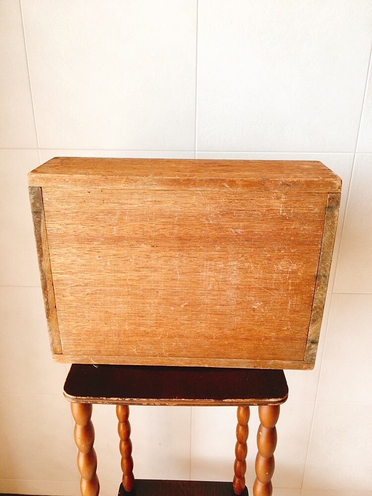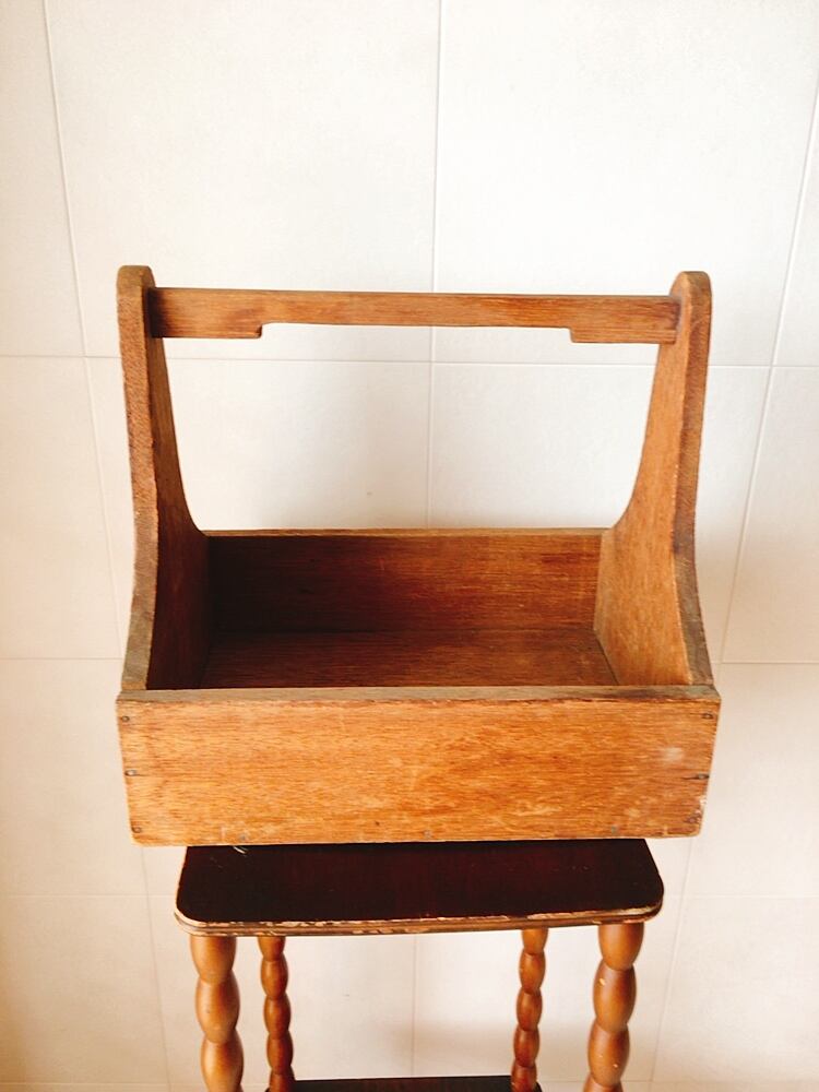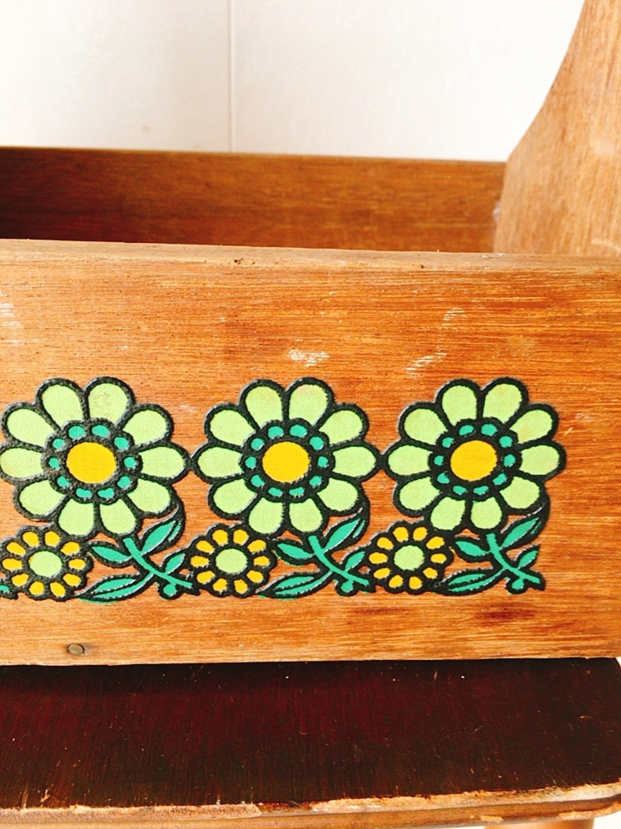 レトロポップな花柄のシールがポイントの、木箱(岡持ち)です。