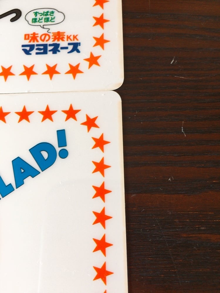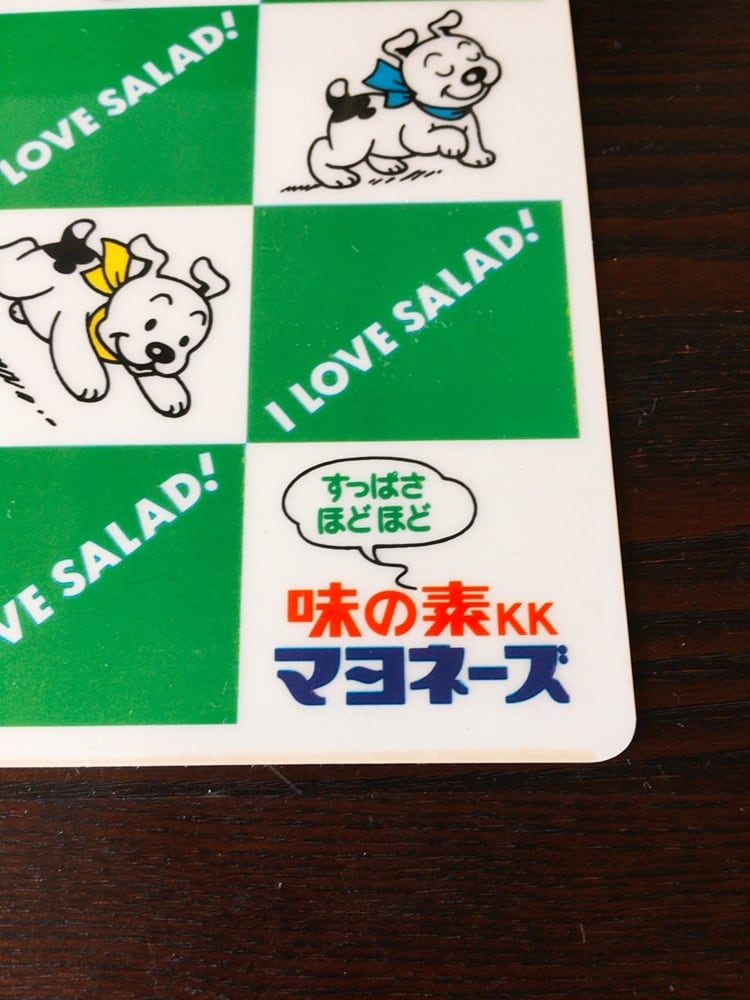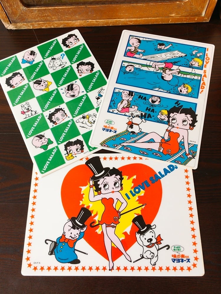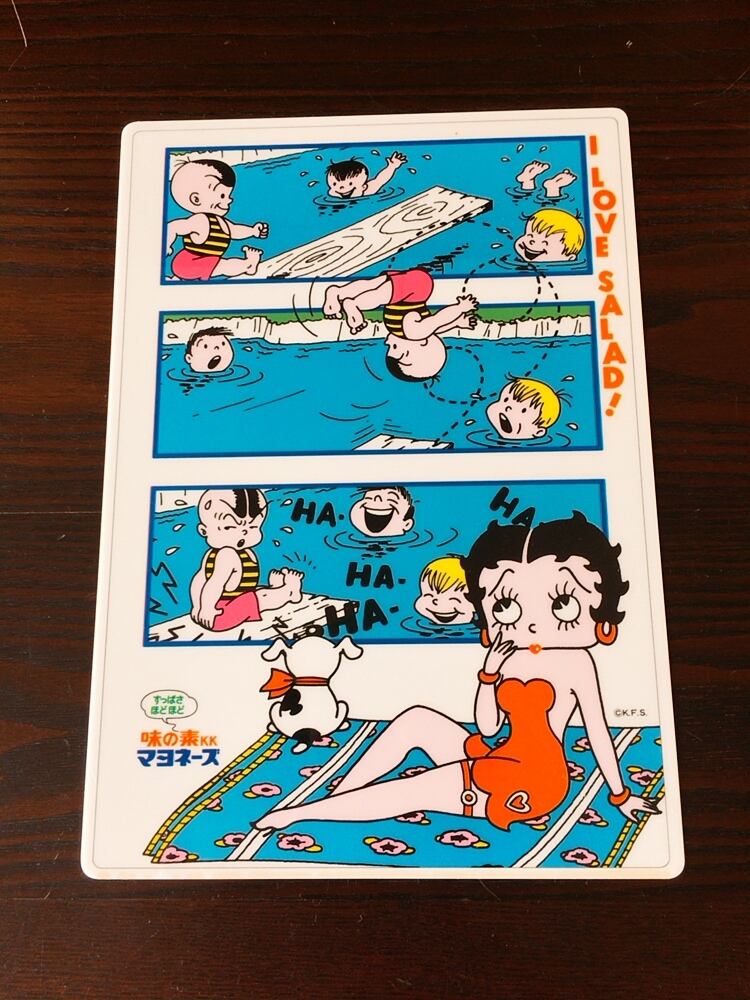 1977年に味の素マヨネーズのイメージキャラクターになった頃のノベルティ、ベティちゃんの下敷きです。