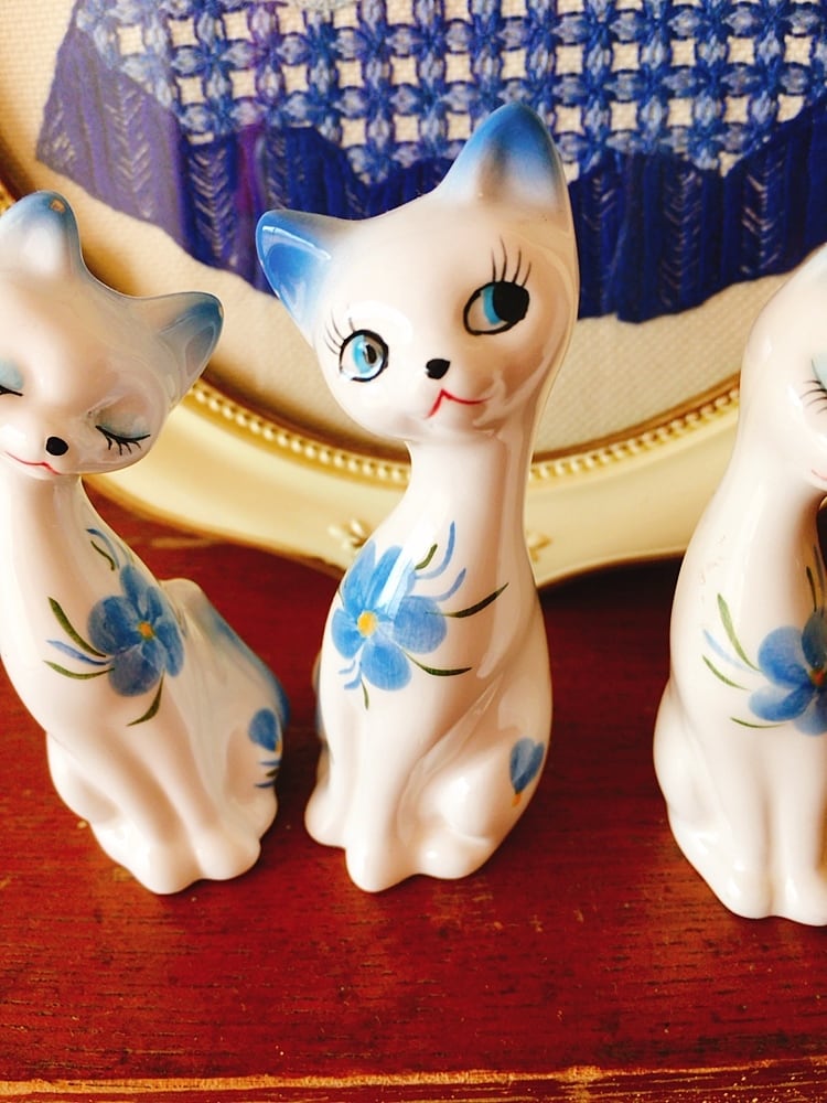昭和レトロ 猫 陶器 置物 ミニサイズ 3匹セット