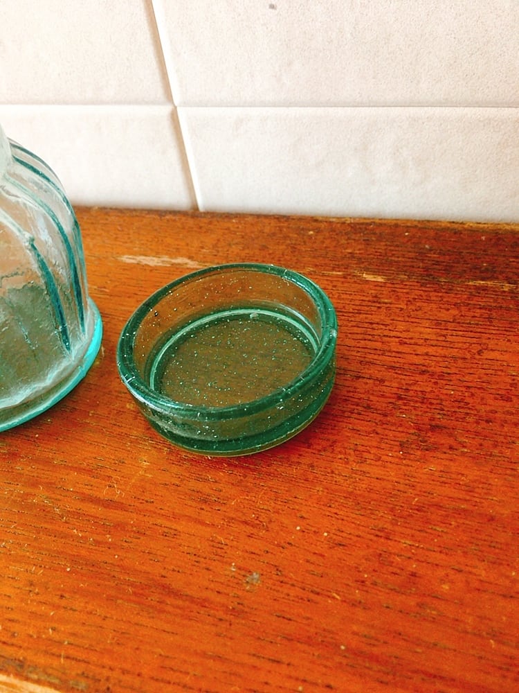 昔のラムネ瓶のような薄いグリーンのガラスで、気泡もたっぷりです。