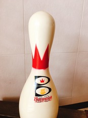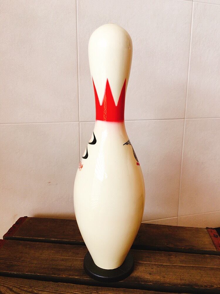 本物と同じ位の大きさがあり、恐らく本物のボーリングのピンに土台を付けた品になります。