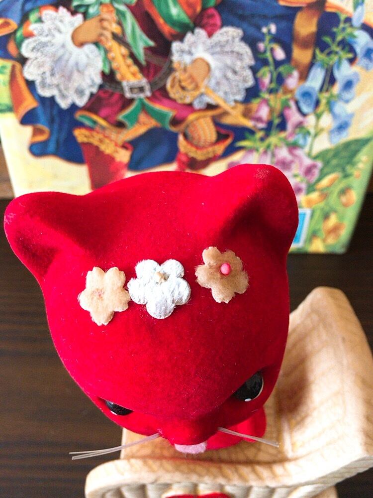 昭和レトロ フロッキー素材 赤い猫ちゃん 貯金箱