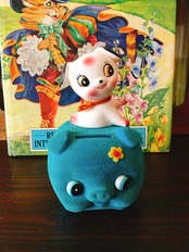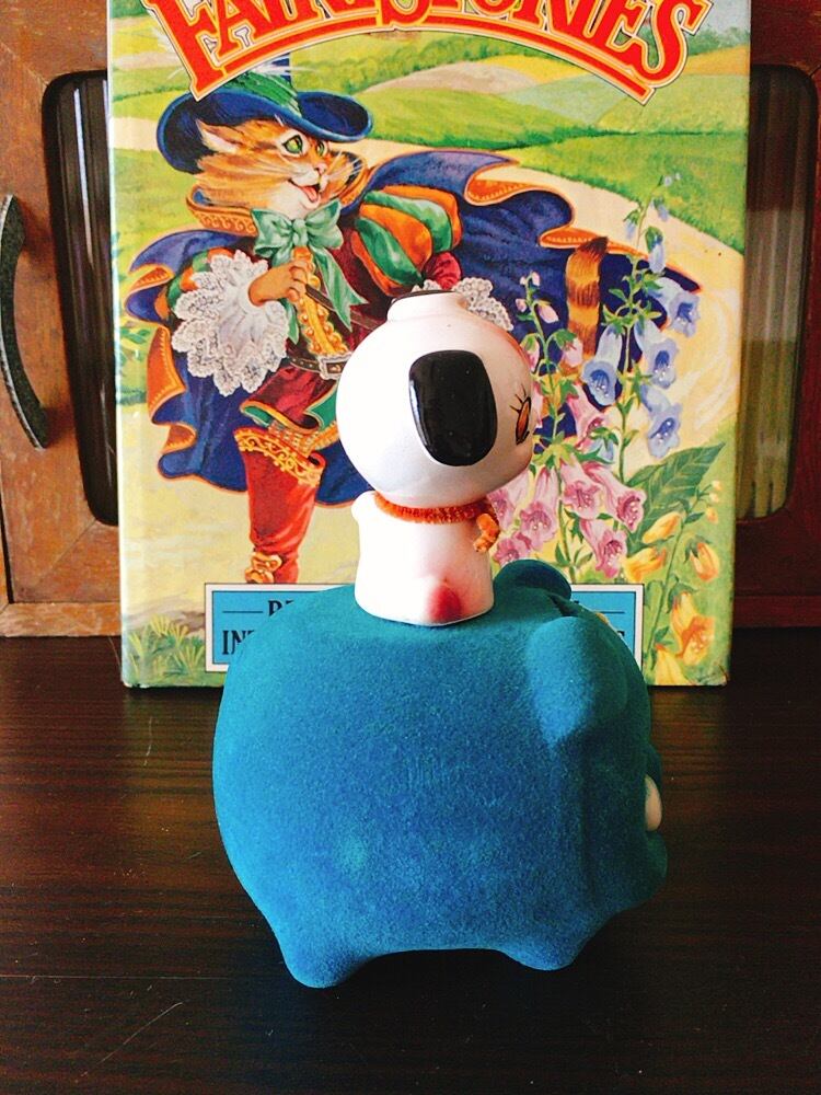 昭和レトロ フロッキー素材 青い豚さん 貯金箱