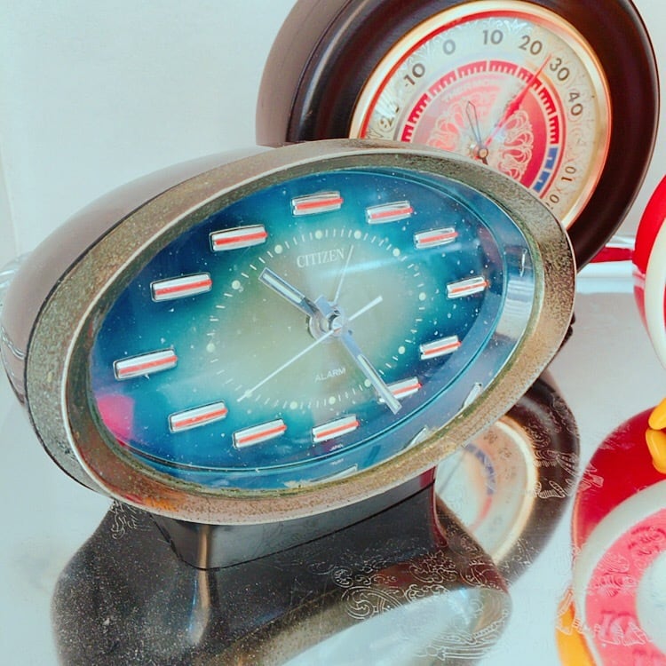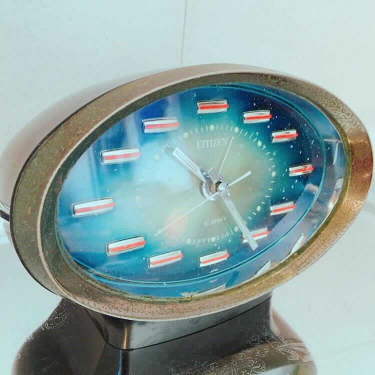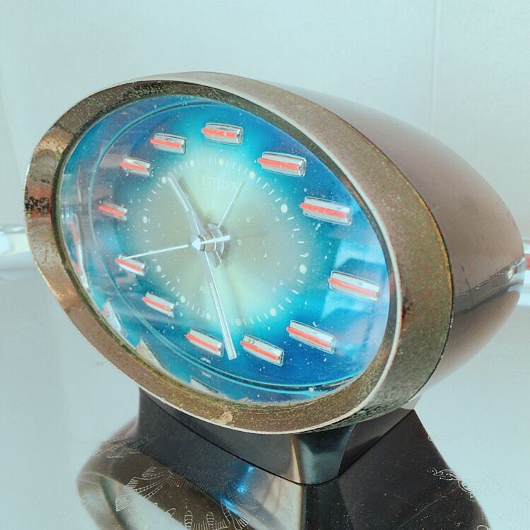 スペーシーなデザインがカッコイイ、シチズンの置時計です。