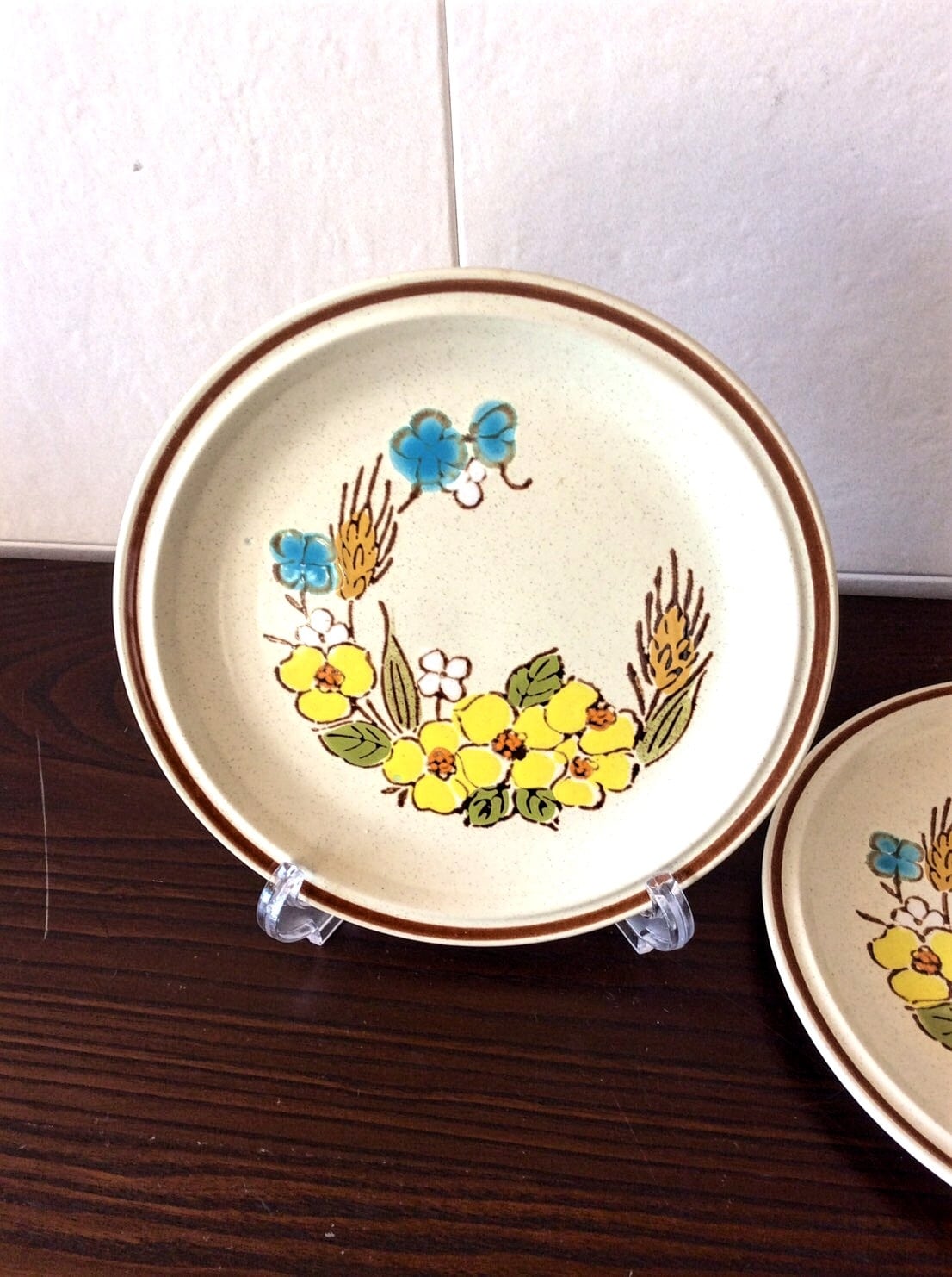 裏には、Floral Expressions Healthside Stone ware SPRING TIME とあります。ストーンウェアならではの風合いと、手描きの花が可愛いです。大きさは、直径19.8㎝位です。欠け等ないですが、古いものになりますのでご理解のほどよろしくお願いいたします。1枚の値段です。
