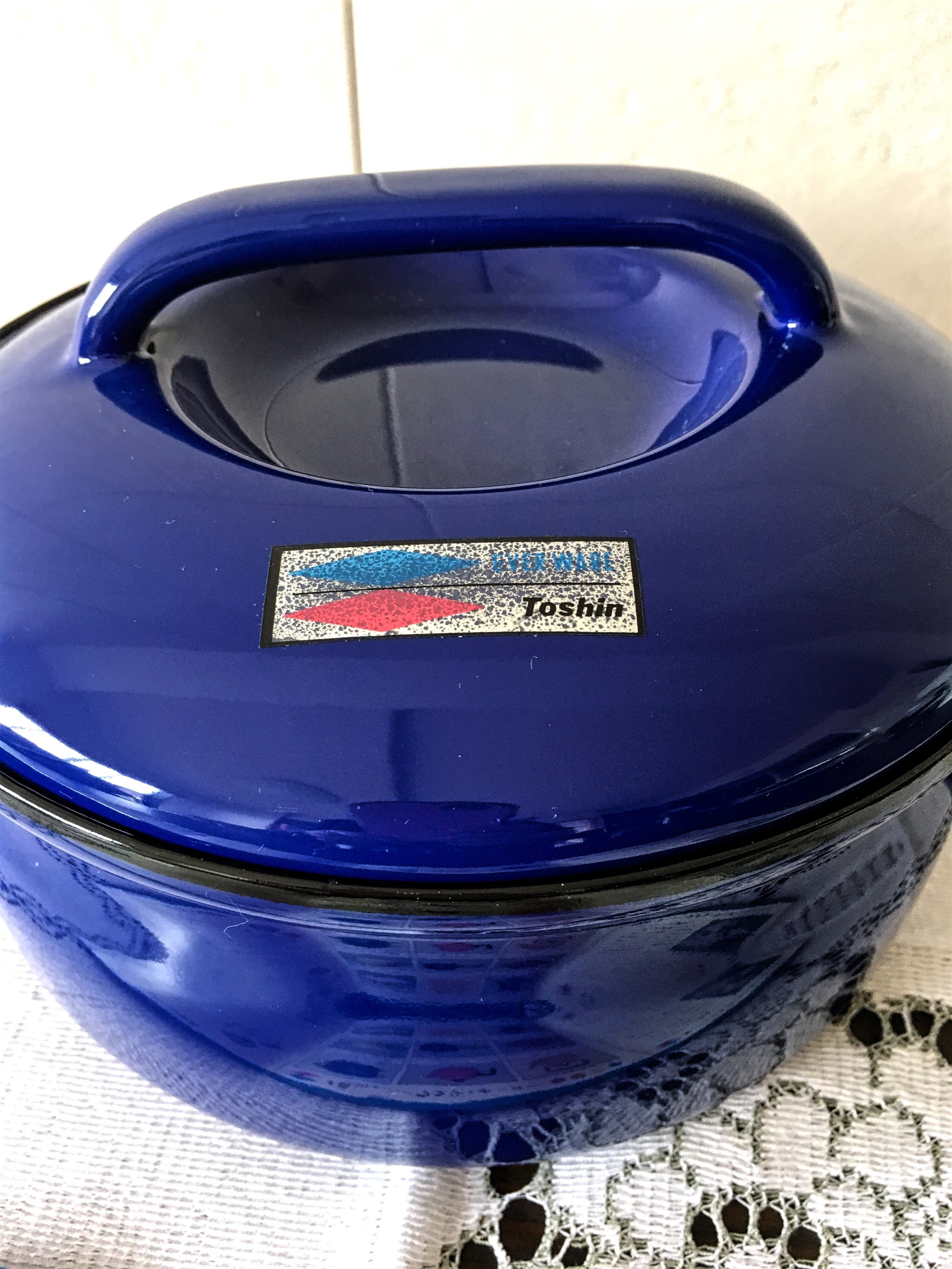 グッドデザイン賞を受賞した、東進プレス工業のエバーウェア、キャセロール(浅型)です。シールに経年を感じますが、未使用なので綺麗です。大きさは直径20㎝、高さ9㎝位です。とってもおすすめです(๑˃̵ᴗ˂̵)!