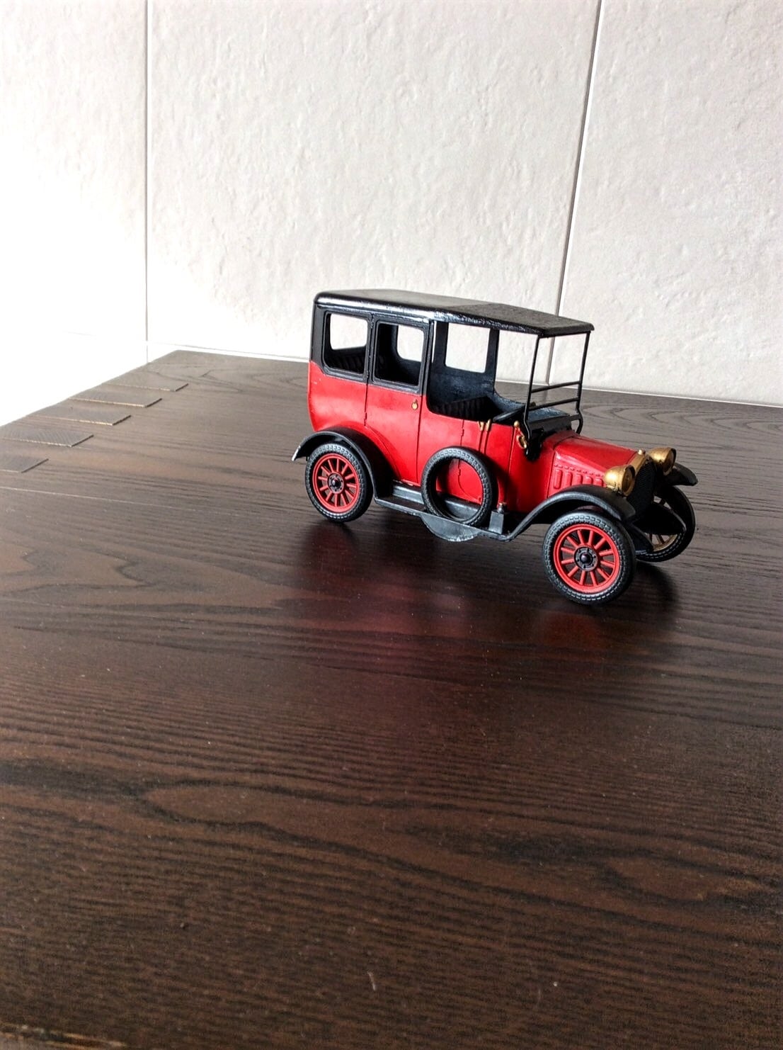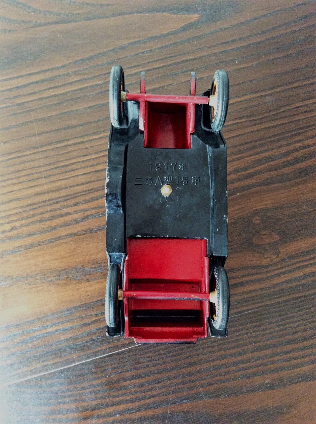 三菱A型は、大正時代に三菱が全て手作り、国産で製造した車です。こちらのミニカーは、昭和60年に三菱がダイキャスト製造メーカーに特注で作らせたものになります。左ミラー下、角等に少しはがれありますが、全体的には状態は良いです。大きさは全長15㎝、高さ9㎝、幅7㎝位です。