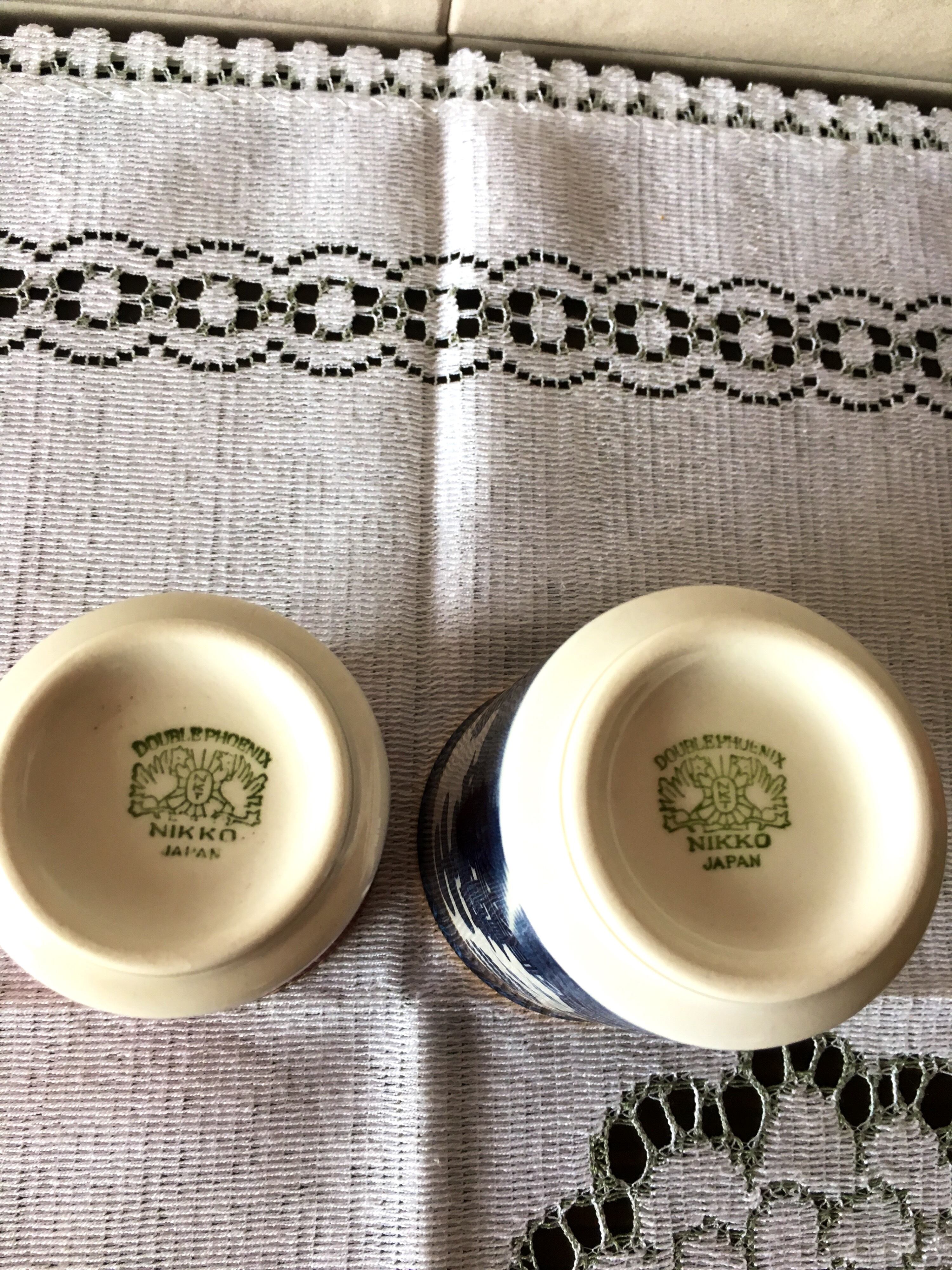 ニッコーのウィローパターンの湯のみセットです。未使用品なので状態は良いです。ただ、古いものになりますのでその点ご理解のほどよろしくお願い申し上げます。ウィロー柄に金彩、縁の柄も細かく素敵です。大きさは、ブルーの方が直径6.6㎝、高さ8.4㎝位、赤の方が直径6㎝、高さ7.6㎝位です。
