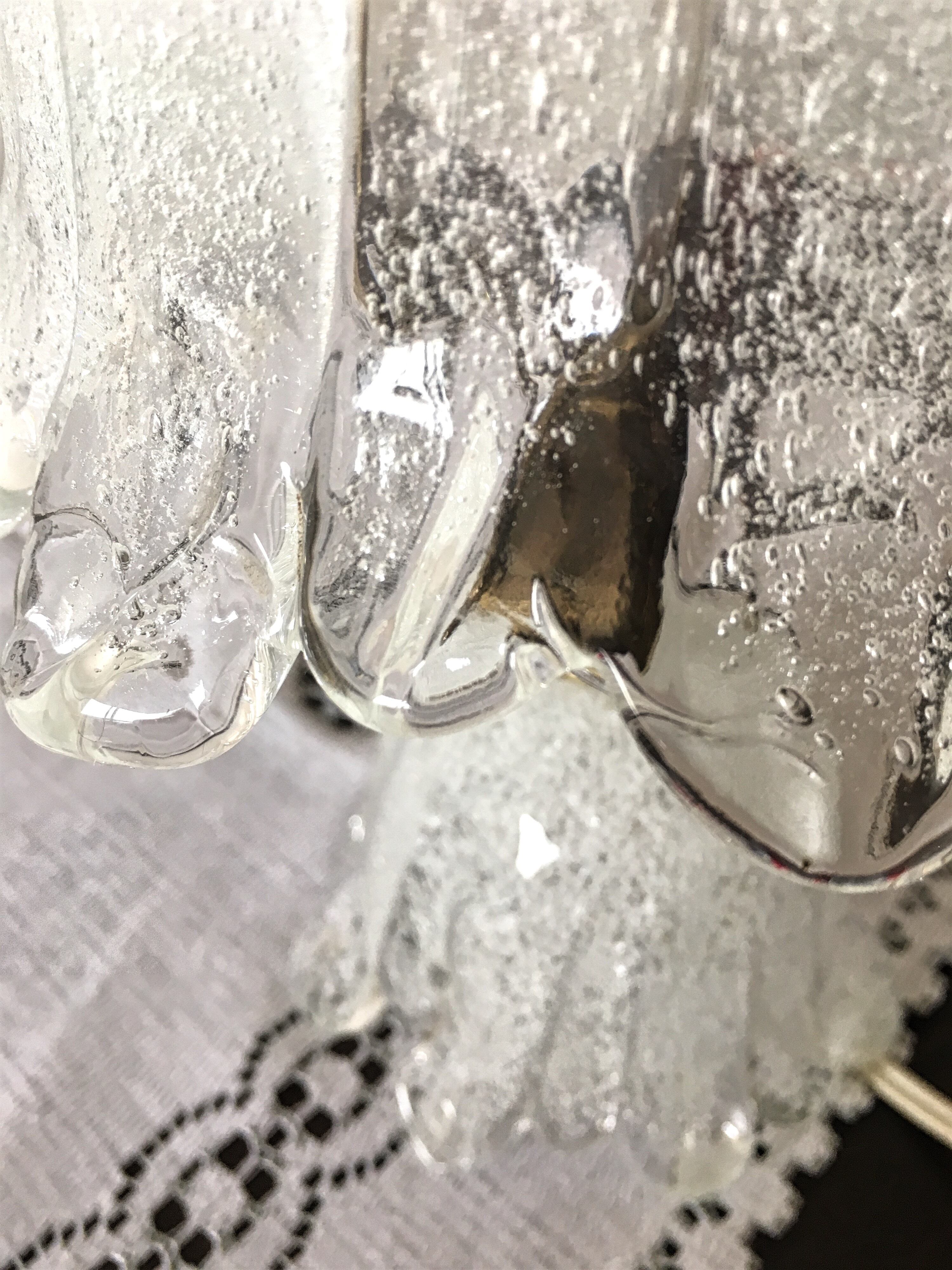 クラゲやきのこのような形をし、ムーミンやジブリのキャラクターにいそうなフォルム、そして今にも触ってみたくなるような(๑>◡<๑)氷のような質感の岩田ガラスのランプです。別名、クラゲランプとも呼ばれています。