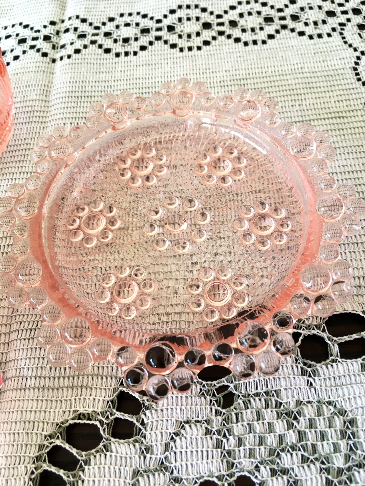 アデリアの人気シリーズ、ピコットのピンク色の小皿です。画像3枚目のようにコースターとしても使用できます。大きさは、直径11㎝位です。つぶつぶの縁とピンク色が可愛らしいお品です。在庫2個になります。1個のお値段です。