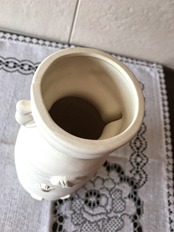 中は釉薬がかかっていて、ツルツルしています。底にこの花瓶の名前と思われるラ・ジョンキーユと彫があります。未使用デッドストック品です。保管中にできた黒っぽい擦れがありますが、目立つものではないです。箱は傷みがあります。古いものとしてご理解のほどお願い申し上げます。