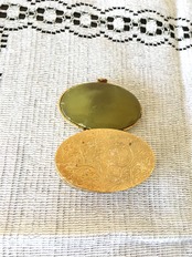 グリーンの大理石に細かい模様が側面、裏側に施された、ピルケースです。石は厚みがあります。少しサビ、接着剤の後がありますので、画像にてご確認ください。古いものとしてご理解のほどお願い申し上げます。