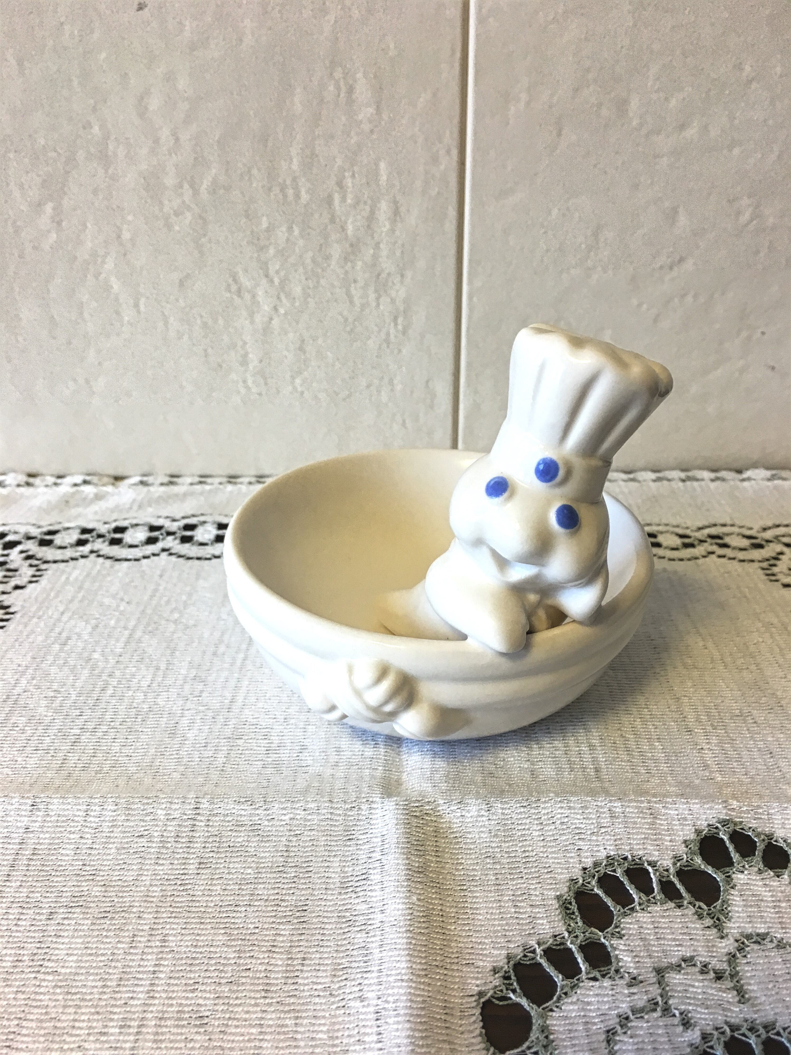 アメリカの製粉会社、Pillsbury社のイメージキャラクター、DOUGHBOYの陶器製のミルクポーションです。キャラクターとお皿は一体化しています。