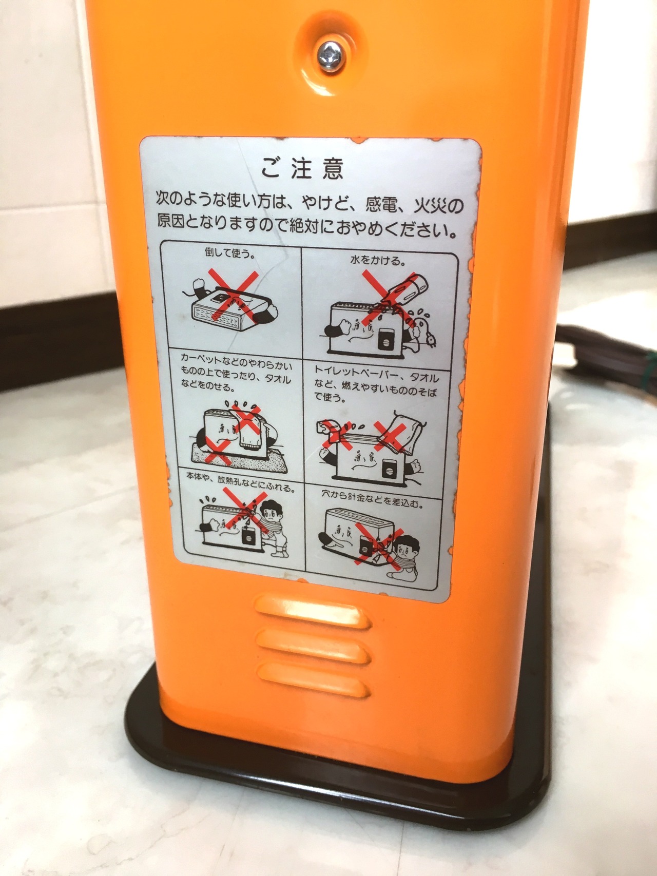昭和レトロなオレンジ色が可愛い、東芝製の電気ストーブです。
