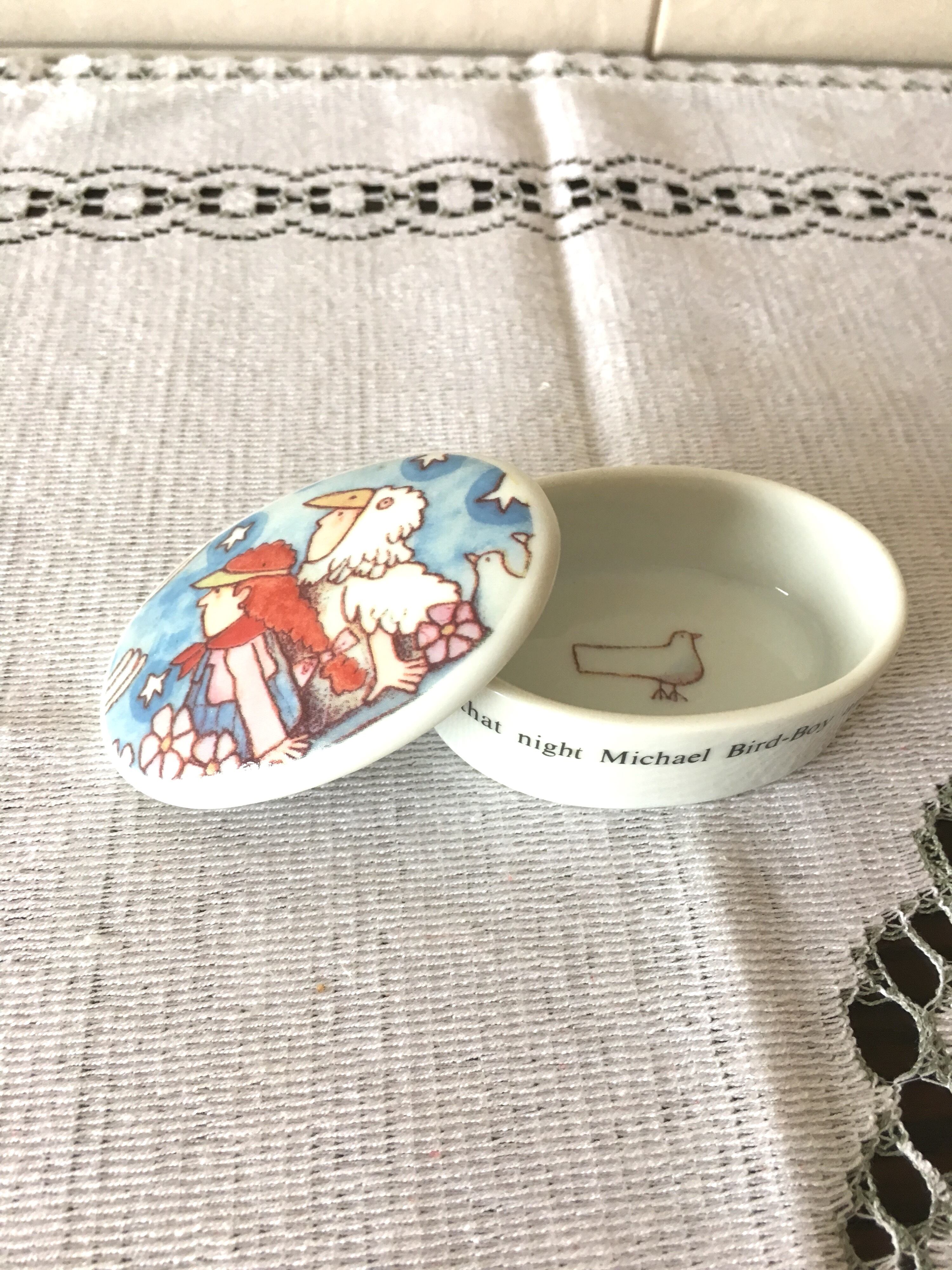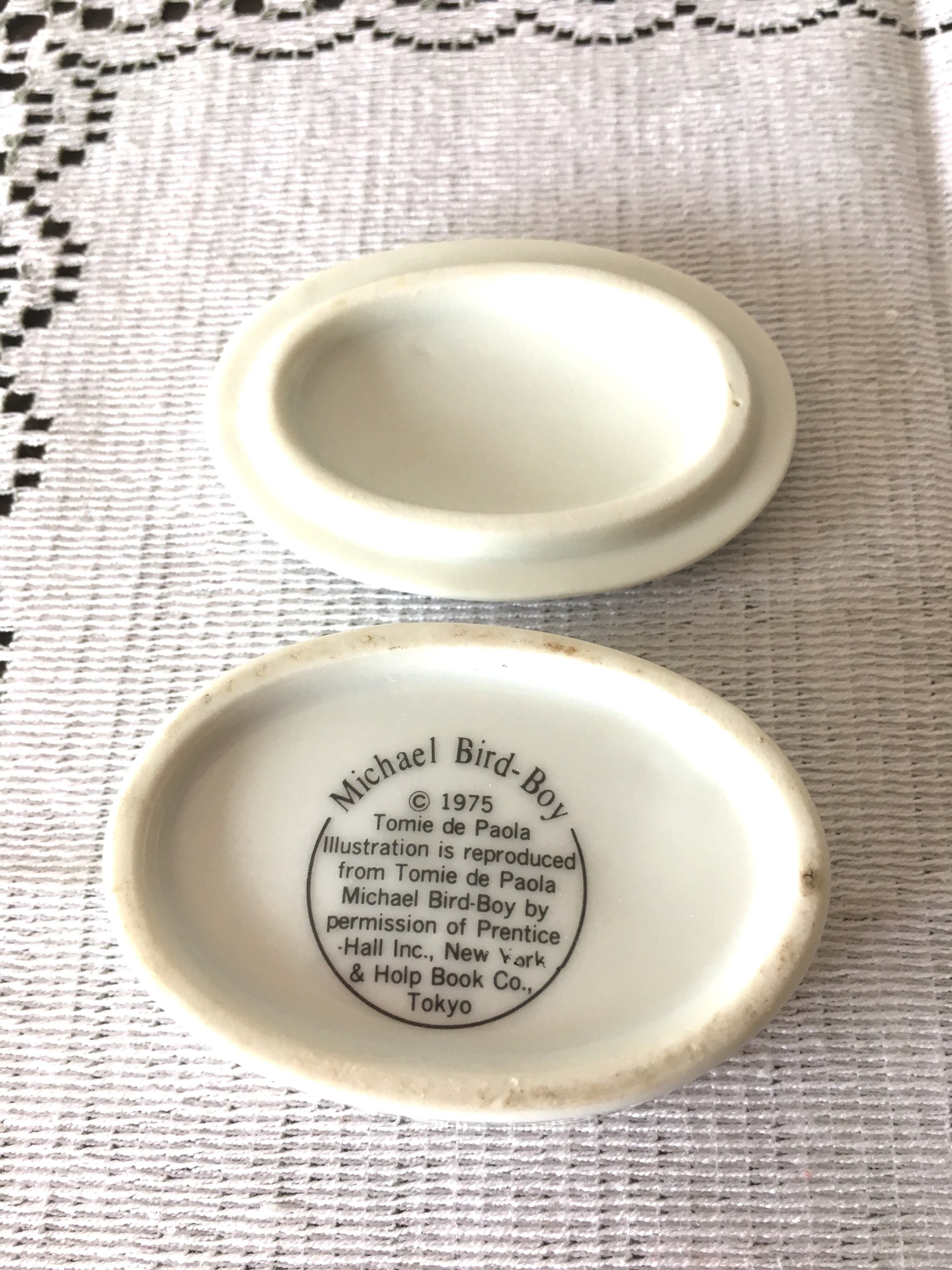 Michael Bird Boy という絵本がモチーフとなった陶器製の小物入れです。作者は米国のトミー デ パオラ氏。