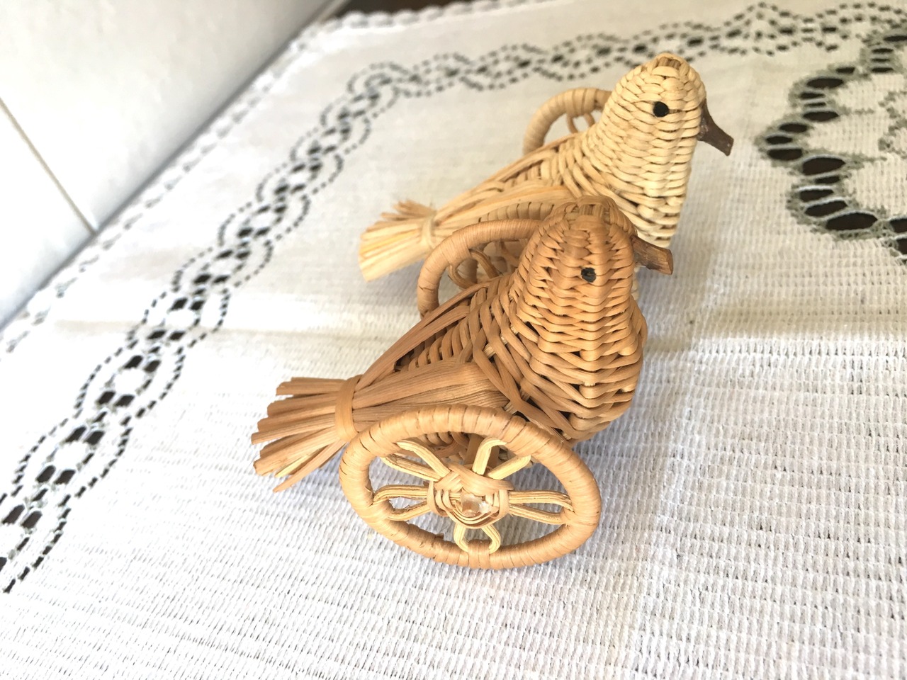 アケビのつるを鳩の形に編み込み、サイドに車を付けた可愛らしい郷土民藝玩具の鳩車、2個セットです。