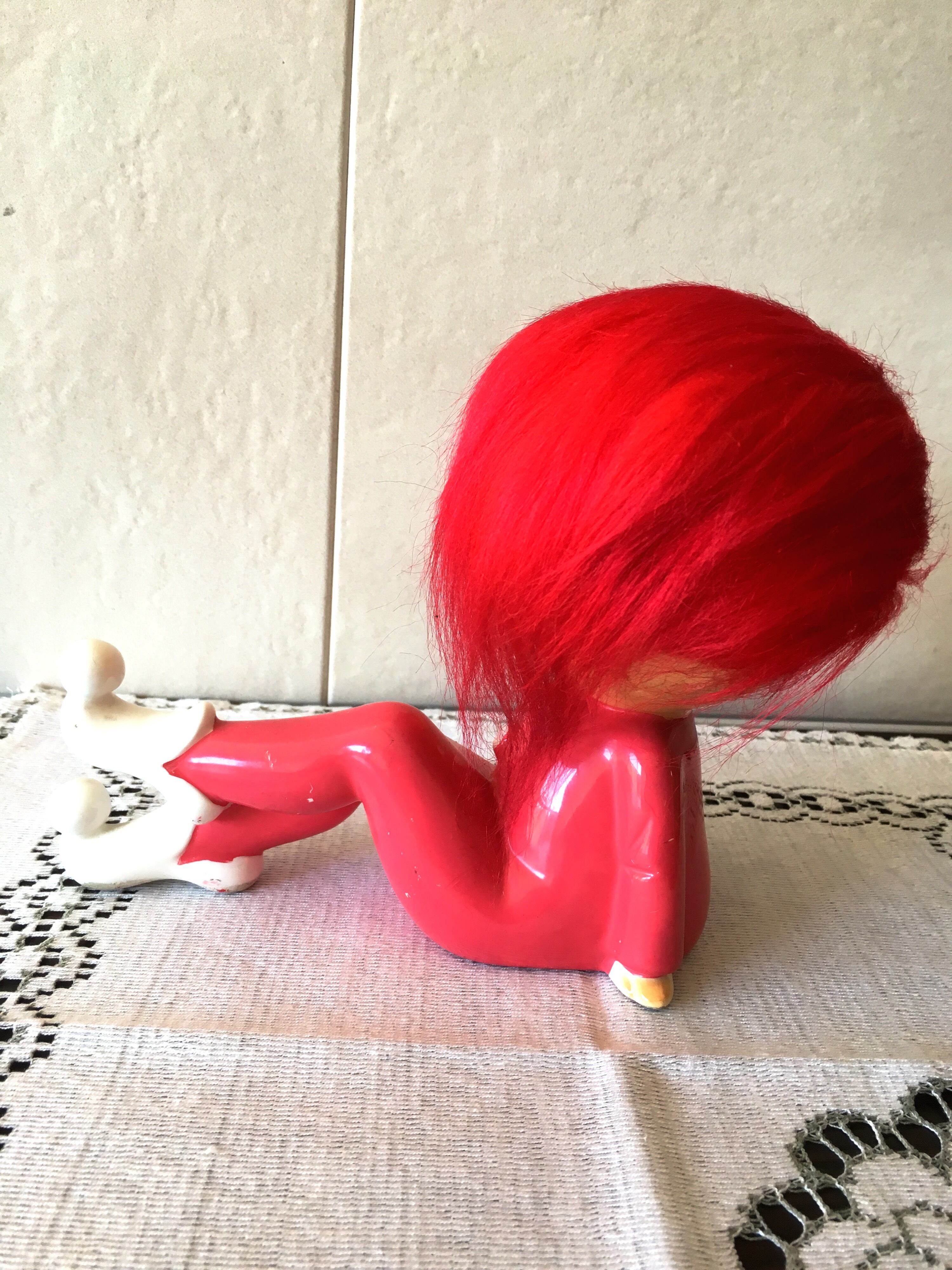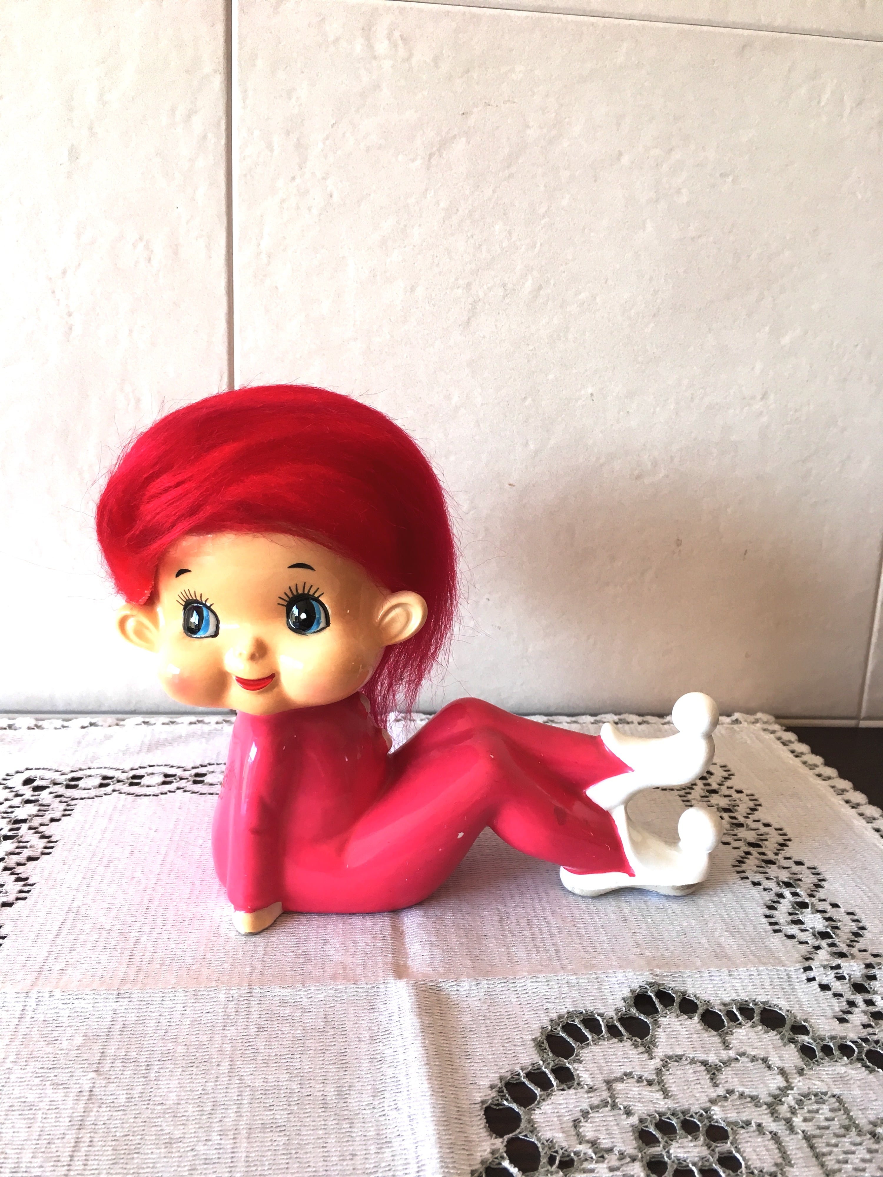 ふわふわの赤い髪の毛がとても可愛く、ピンクと白い靴のサーカスの衣装がお部屋を明るく可愛らしい雰囲気にしてくれます。