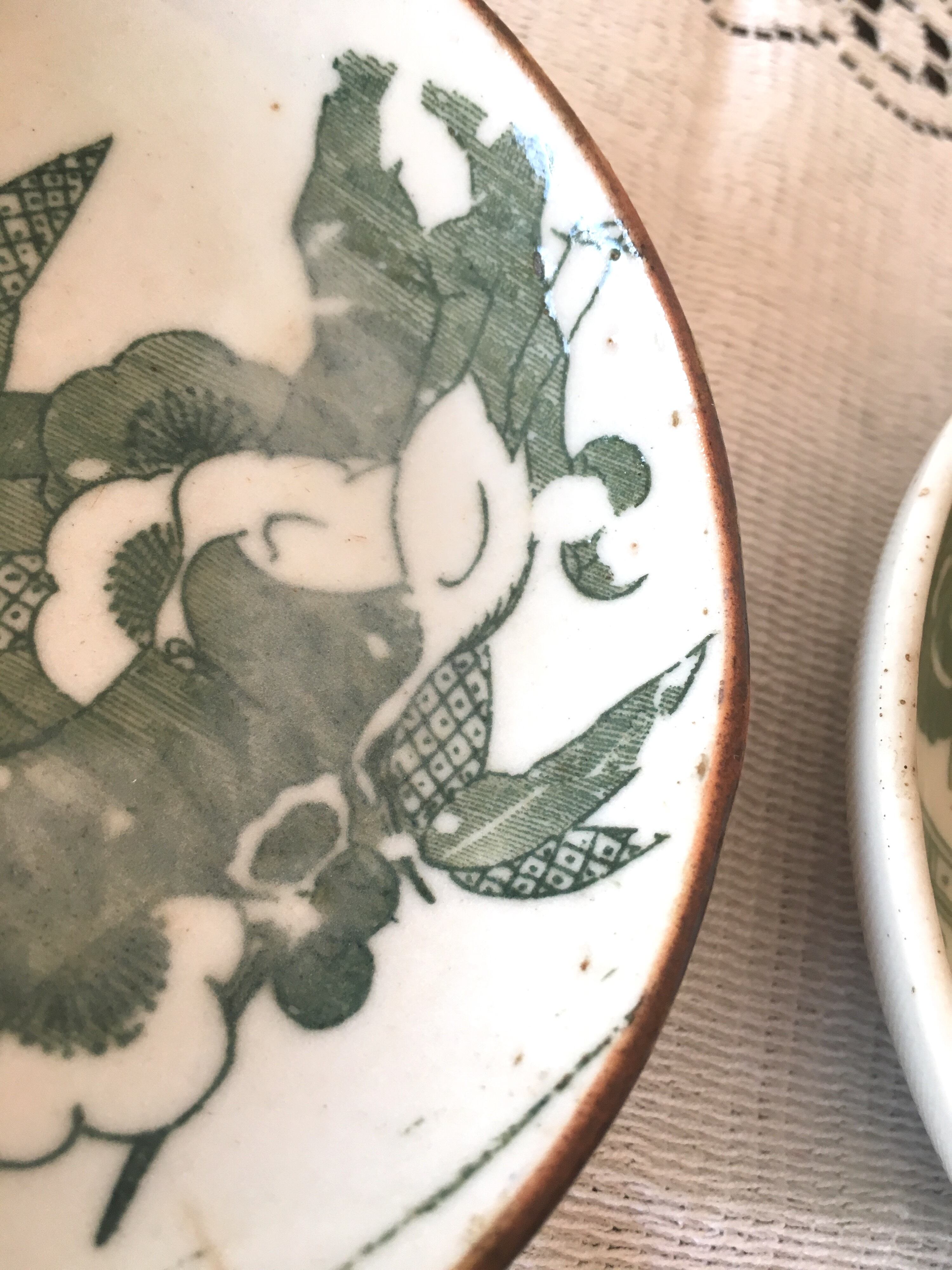 大正〜昭和初期 抹茶グリーン小皿 2枚セット