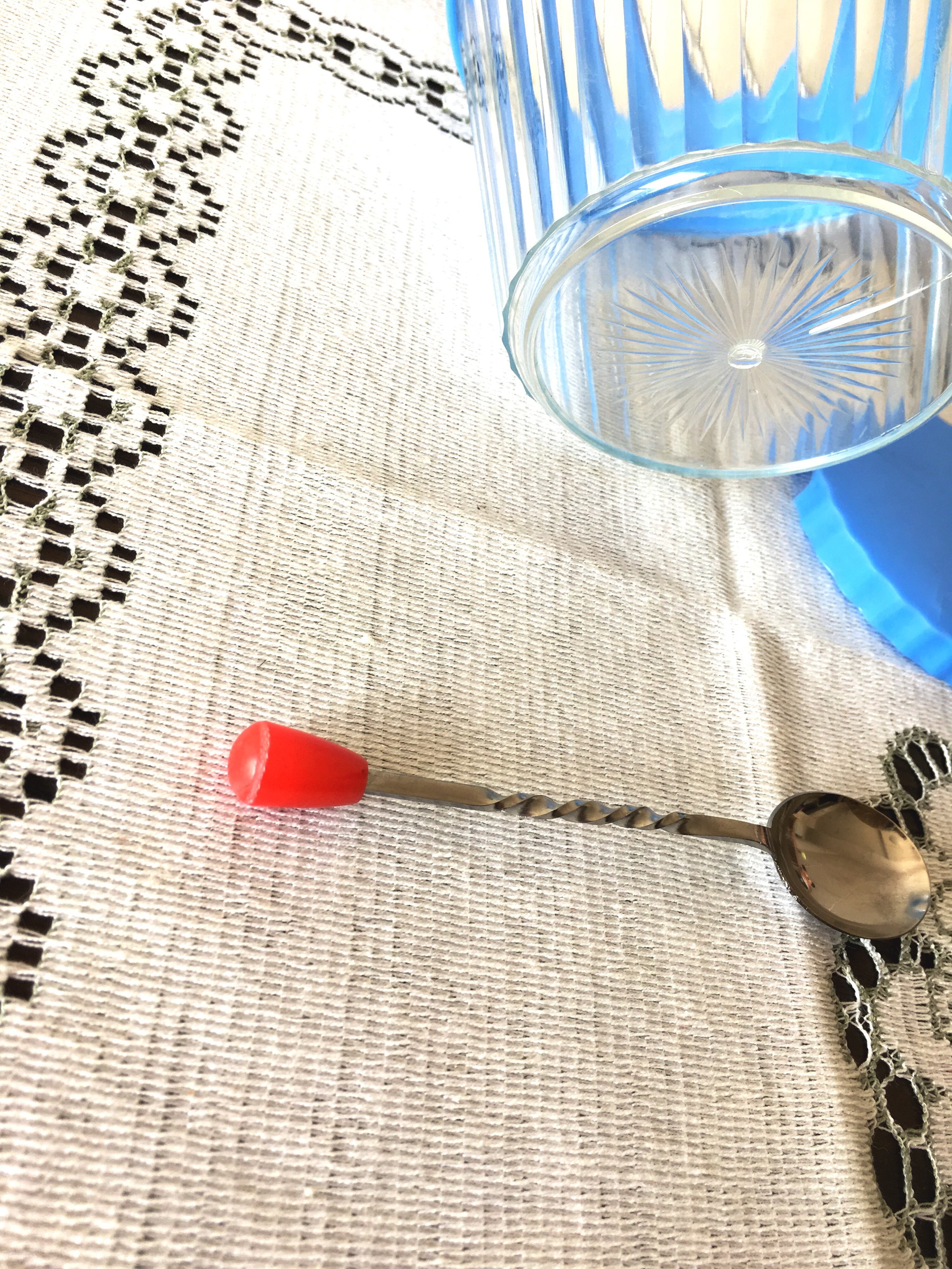 それぞれにねじりスプーンが付いております。(ブルーは赤、ブラウンは白)