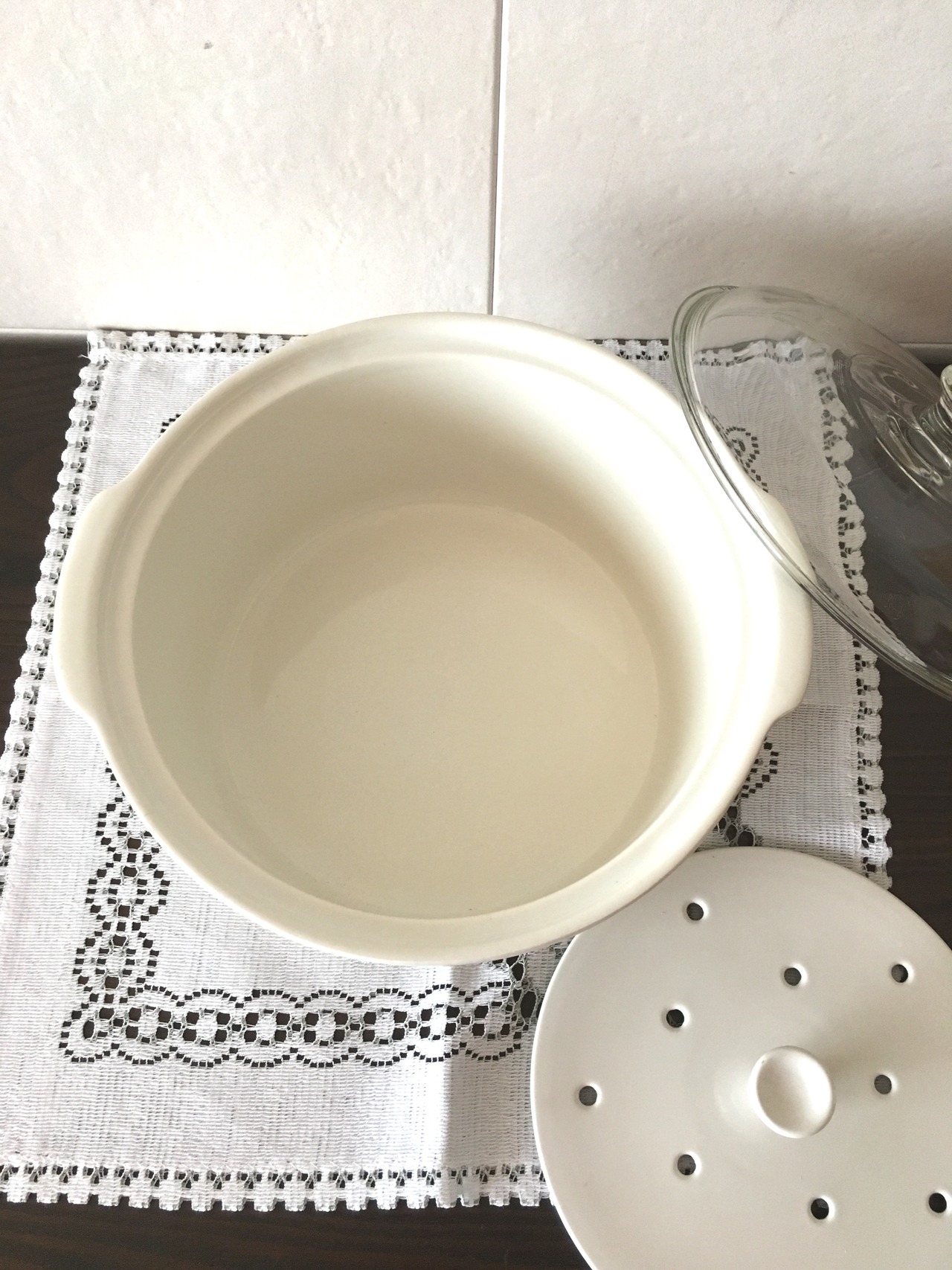 陶器製の落し蓋も付いており、蓋はガラス製です。